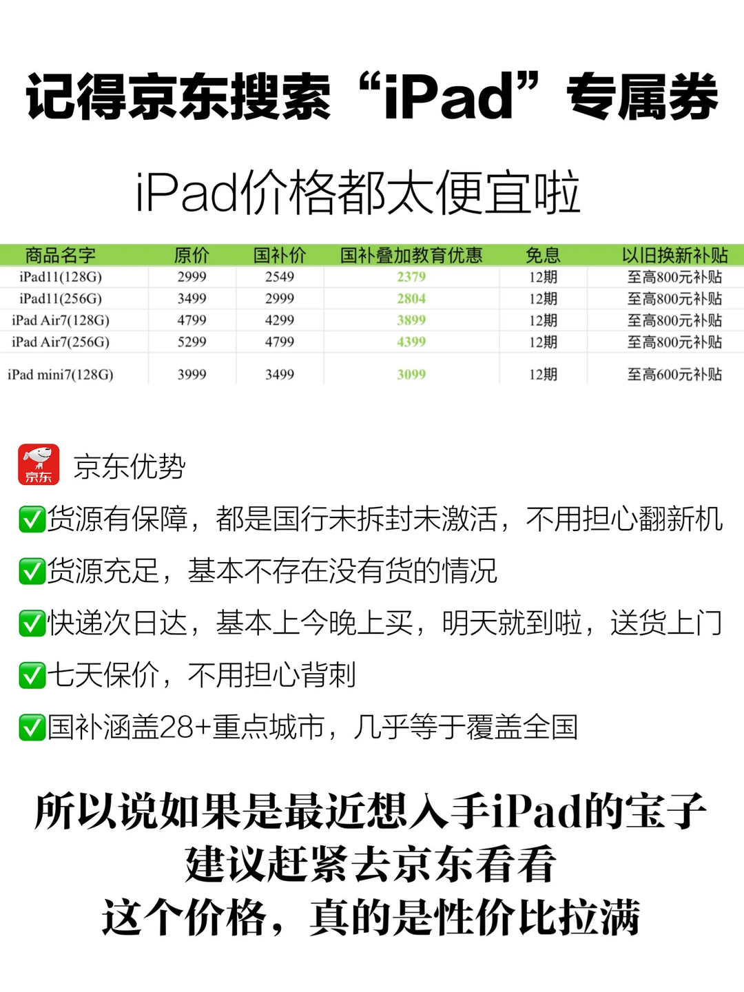 所以说现在iPad京东真的是抄底价!国补➕教育优惠至高优惠900