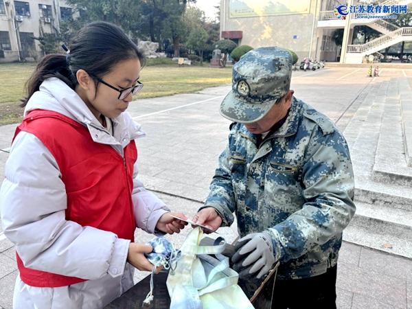 “从旧衣回收到非遗扎染,再到中药福袋,这场融合了环保、非遗与志愿精神的活动,让冬日校园暖意融融。”学院辅导员叶春梅老师表示,扬大学子用巧思与真心,将军训记忆转化为温暖关怀,既践行了绿色循环的理念,又向默默守护校园的人们传递了敬意与感谢,为校园文明注入了青春的温度。