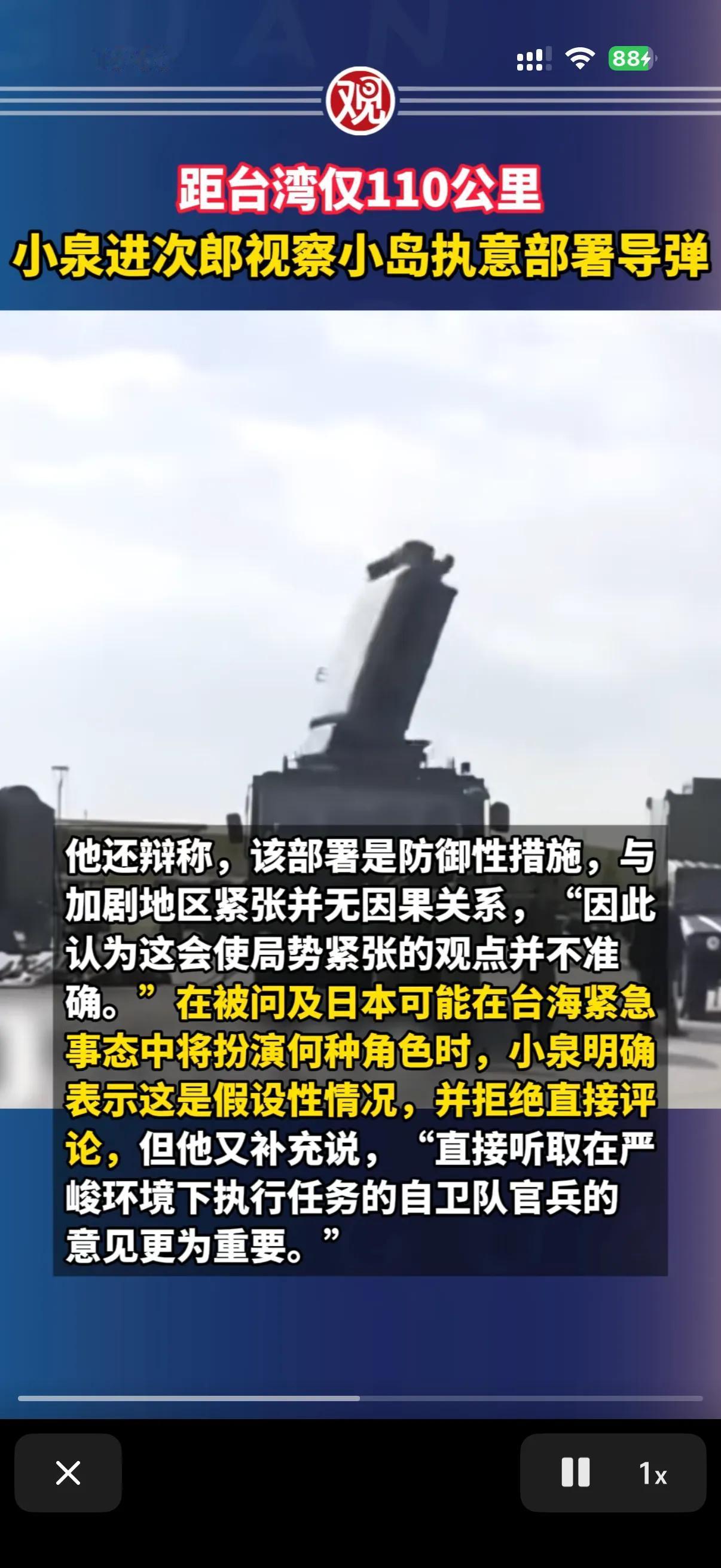 日本疯狂试探要在存在主权争议的琉球群岛部署中程导弹! 当地时间11.24日,日本防卫大臣小泉进次郎在视察了石垣岛和那国岛之后,表示要在阿国岛部署中程导弹! 要知道那国岛离台湾距离只有110公里! 有记者提问,这样做会不会加剧地区紧张局势! 小泉进次郎回答这是为了加强岛屿防卫和降低日本遭受武装攻击的可能性! 可是琉球群岛的主权一直都是存在争议的,琉球群岛一直都不是日本的! 以前二战结束的时候是美国托管,后来日本单方面宣布琉球群岛是其领土,但是琉球群岛居民认为自己是独立地区! 现在日本想要在主权还存在争议的地区尤其是离台湾如此近的地方部署中程导弹就是项庄舞剑!