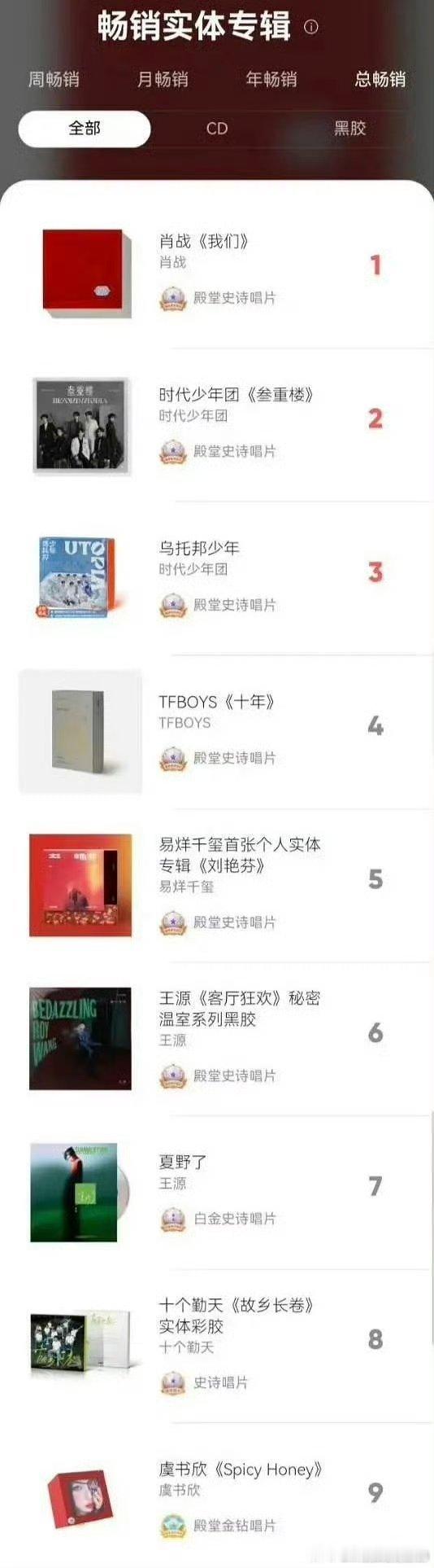虞书欣首张个人实体专辑的官方战报12h拿下🏆周榜/月榜 TOP1-CD📀TOP1年榜TOP3-CD📀TOP2总榜TOP9 - CD📀TOP681s达成殿堂金钻唱片