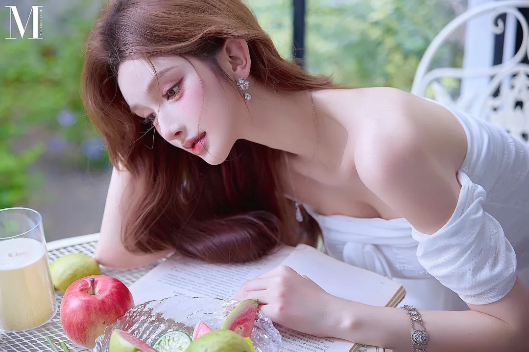 美女摄影写真|窗边轻倚,纱裙、青苹果与漫溢的松弛感。