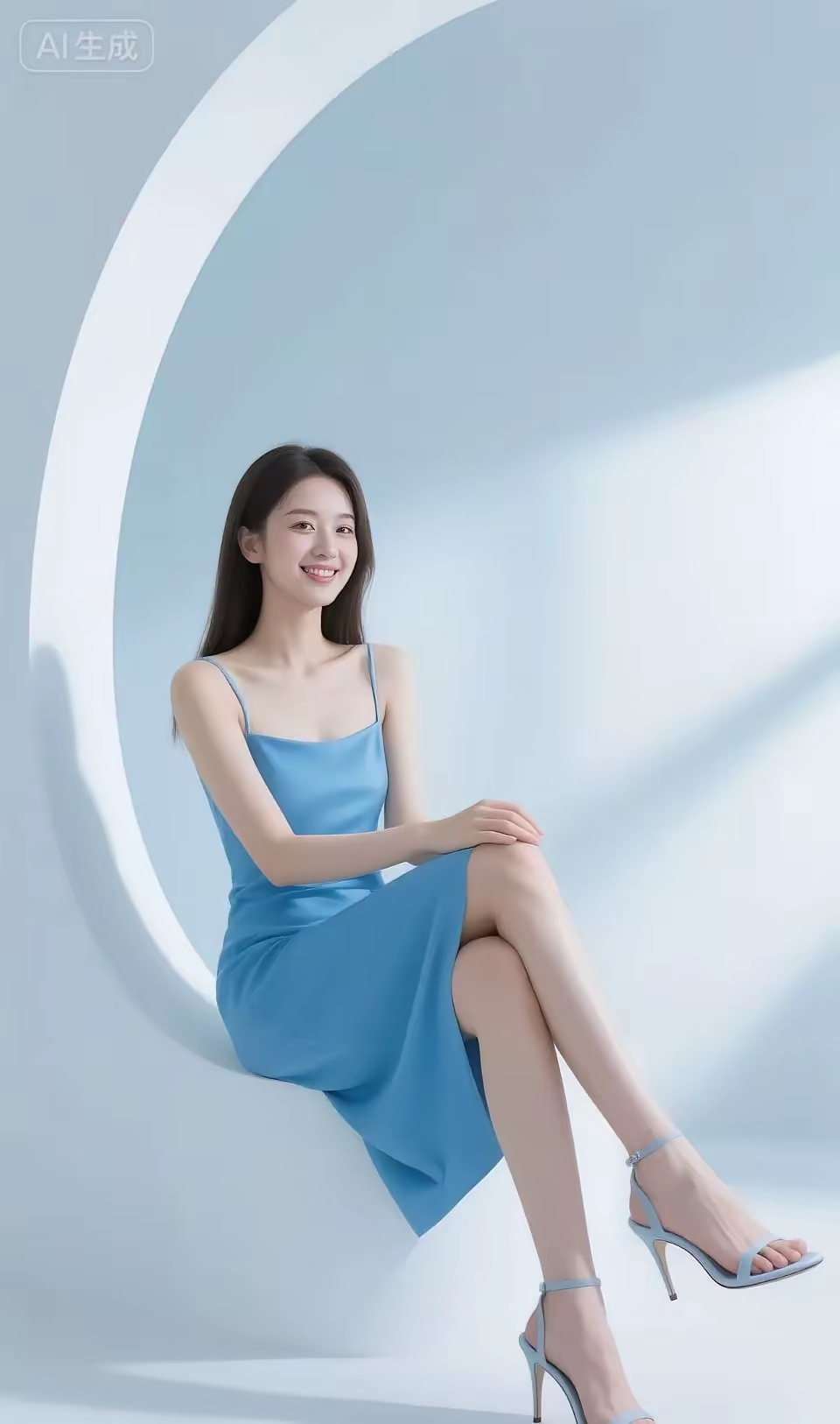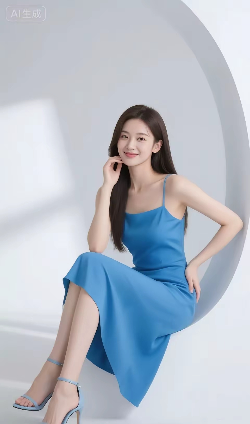 优雅蓝裙,甜美微笑,时尚穿搭,气质满满!💙✨