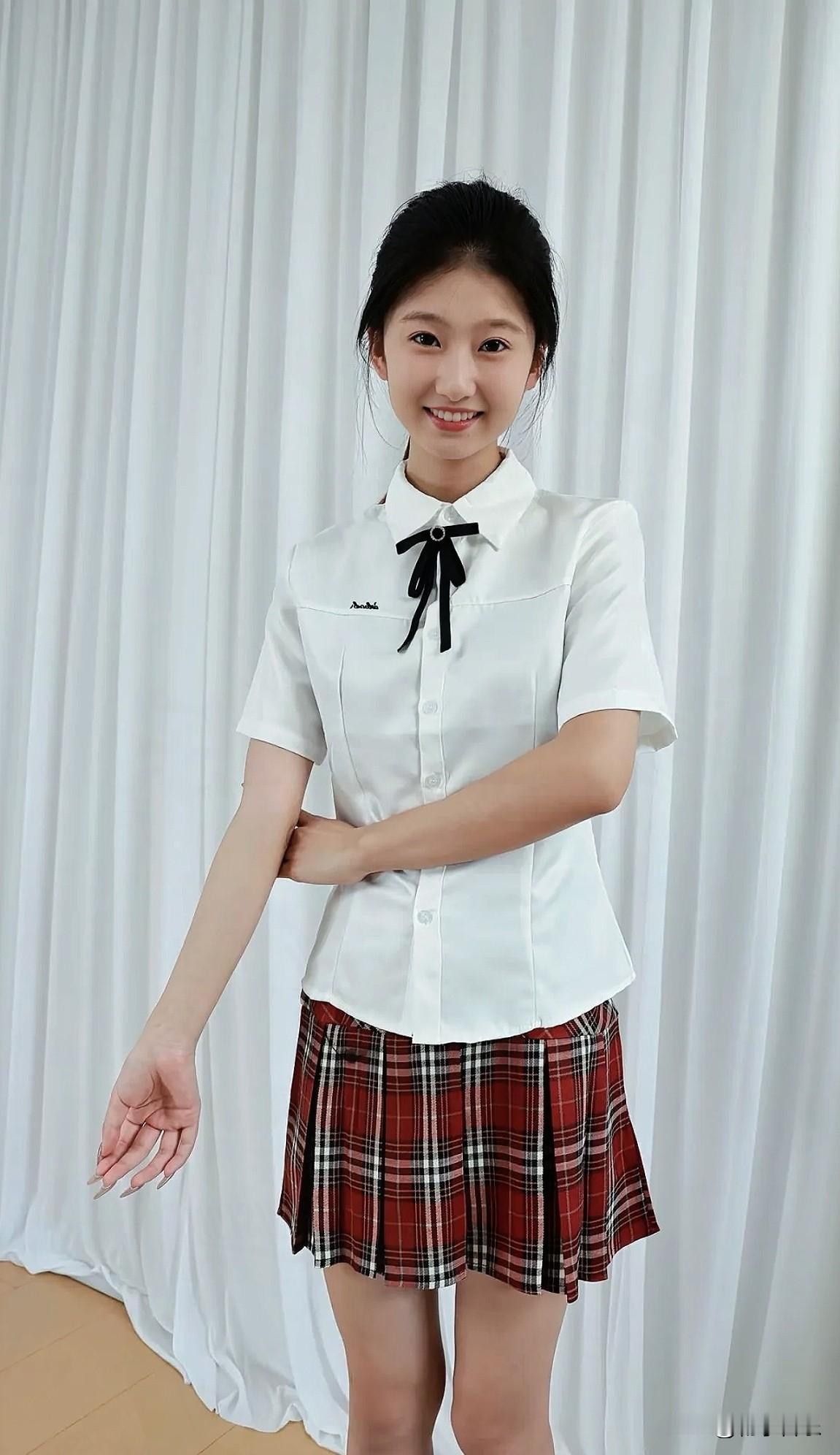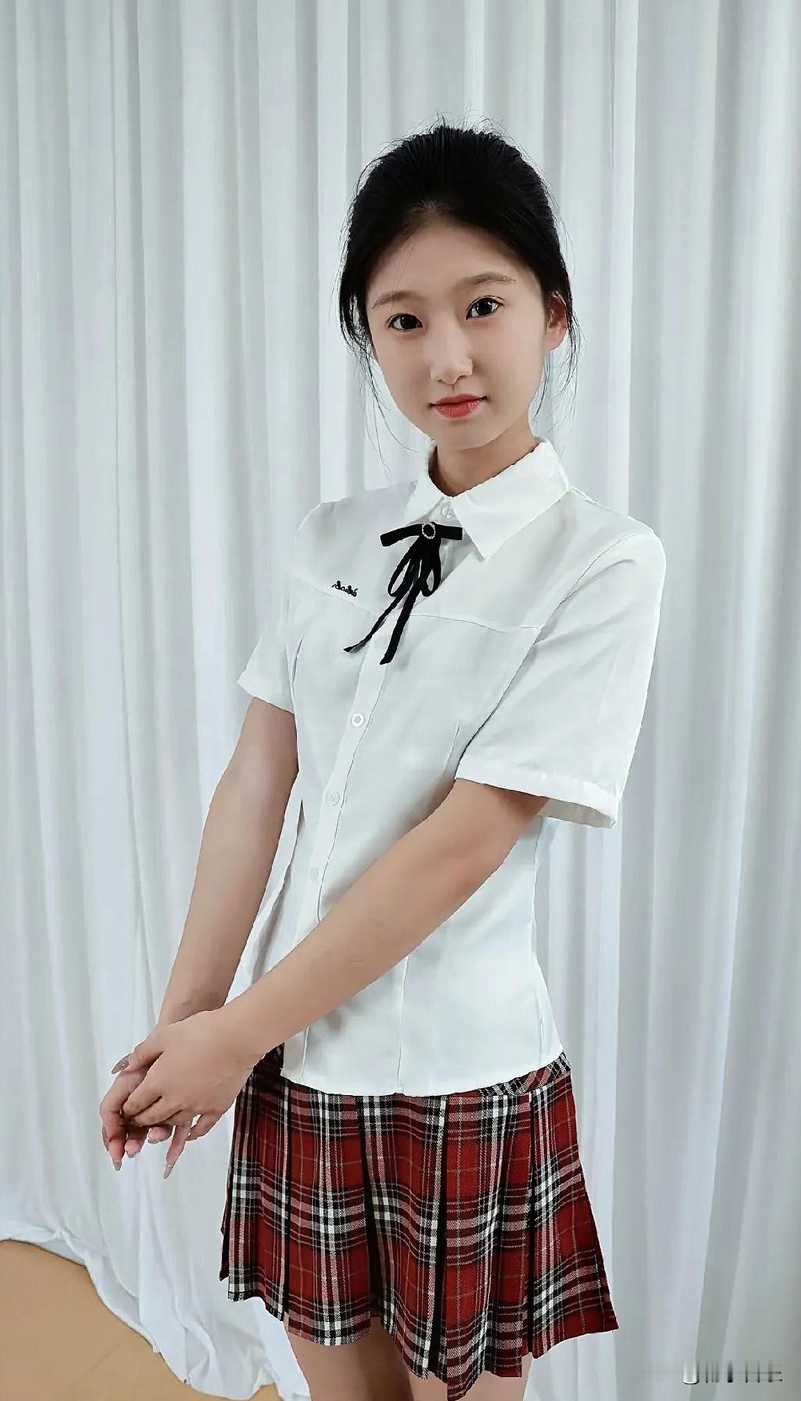 身着制服的小姐姐,扎着马尾,妆容清新,笑容甜美,姿态灵动,尽显活泼可爱...
