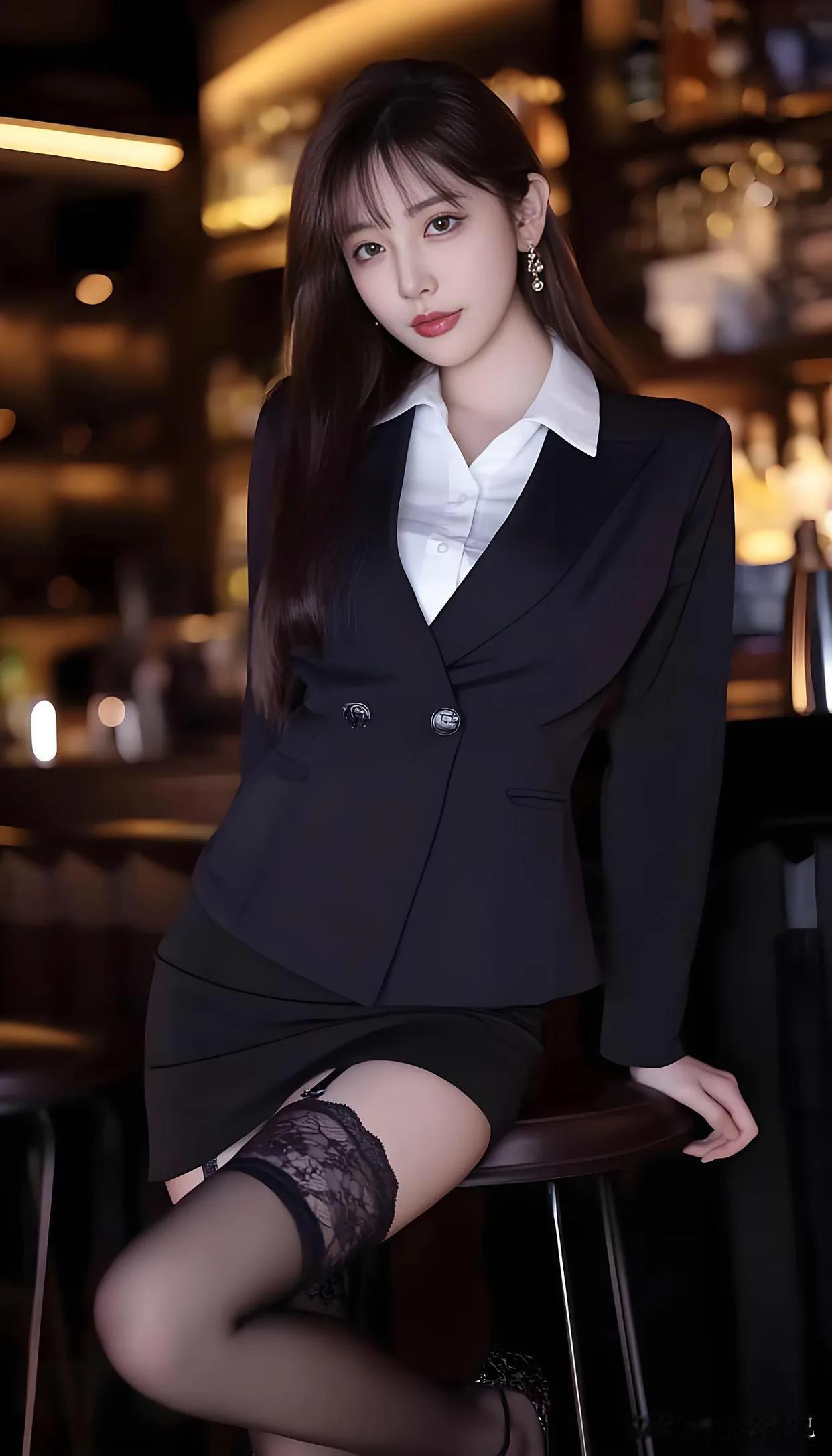 小姐姐这身制服搭配丝袜,真是又飒又美