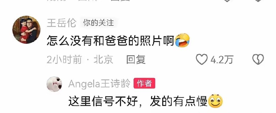 11月23日,王诗龄晒出自己从小到大和母亲的合影后,父亲王岳伦酸溜溜的评论道:“怎么没有和爸爸的照片啊?”王诗龄立刻回复:“这里信号不好,发的有点慢。”随后立刻发了一条自己和父亲从小到大的合影,文案和母亲那条视频一样,都是三颗爱心,配乐也都是一模一样的,主打一碗水端平。网友们看后都乐了,觉得吃醋的王岳伦可爱,也觉得王诗龄小小年纪,就要开始学习端水,如何平衡父母的关系也挺累的。小编觉得李湘和王岳伦离婚对王诗龄造成的影响还是有的,就比如发照片这件事,如果他们没有离婚的话,王诗龄发的应该就是全家福照片了,而不是分开发和父母的单人照了。特别是李湘那条视频里,明明有王岳伦的身影,却只露了下半身,没有让头露出来,这都是王诗龄的刻意为之。王诗龄在这方面还是挺敏感的,她心里对于父母离婚,应该还是很介怀的。
