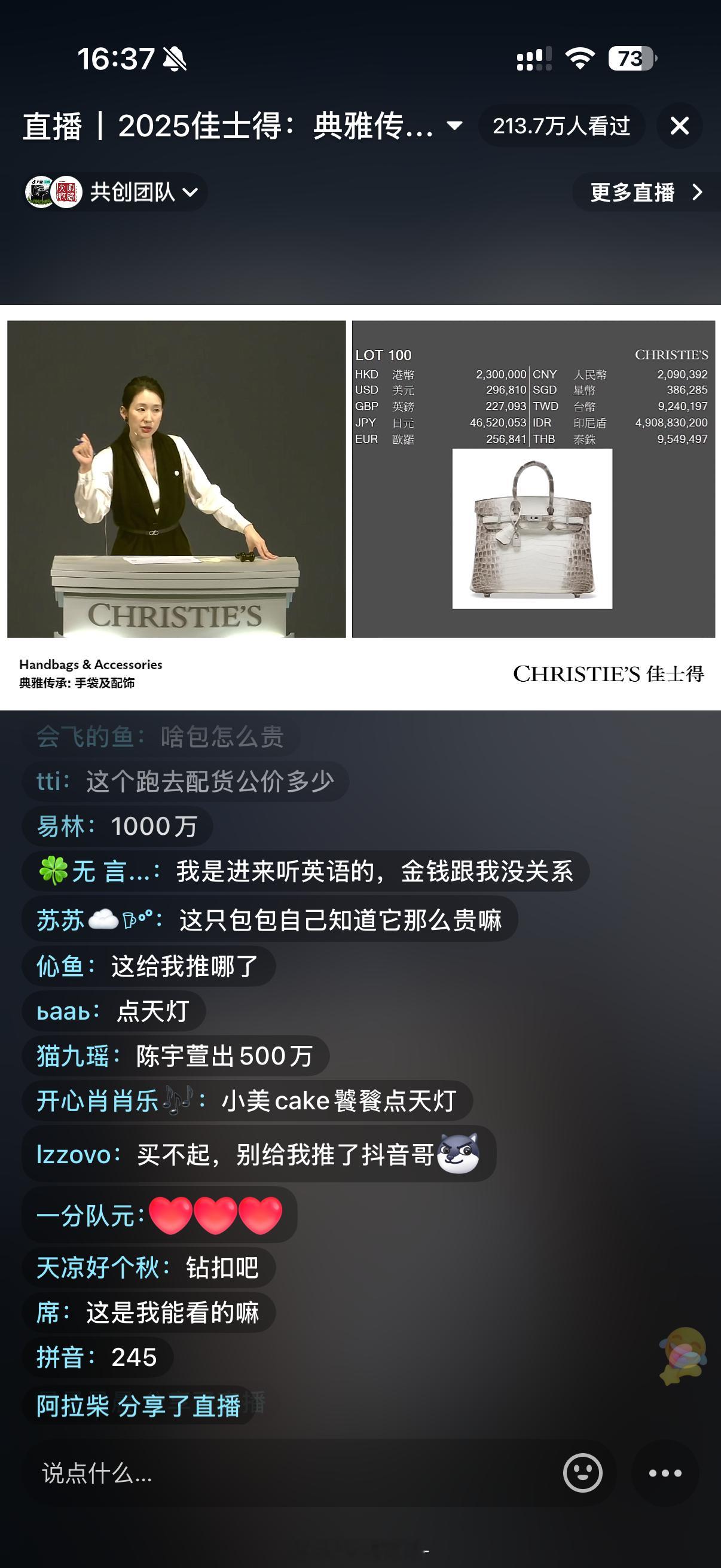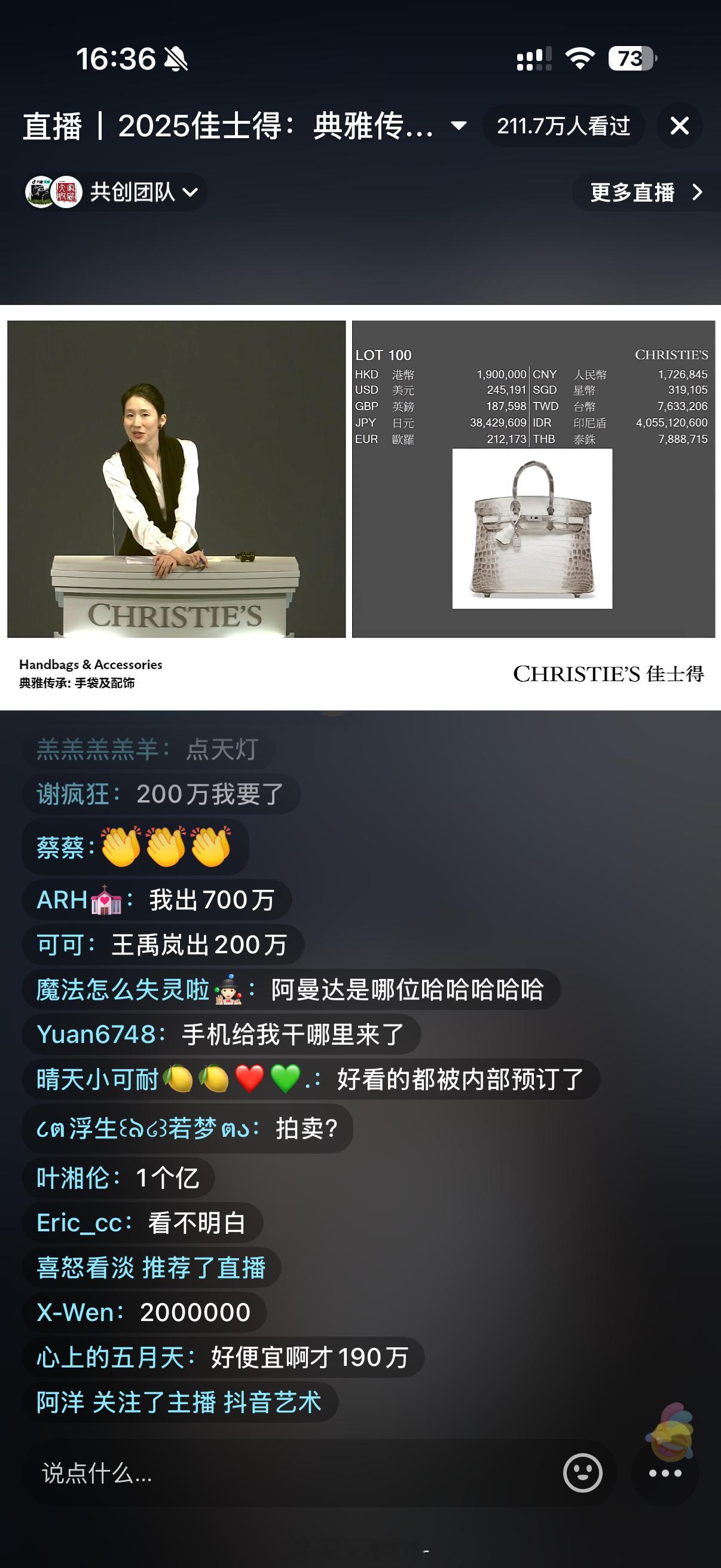 我在抖音看了下佳士得的拍卖今天拍卖专场是爱马仕的主场我看着这个喜马拉雅爱马仕从100多到200多万(其实还在正常价)My dream bag是黑金30的birkin!!这是我最爱的爱马仕包包立个小目标