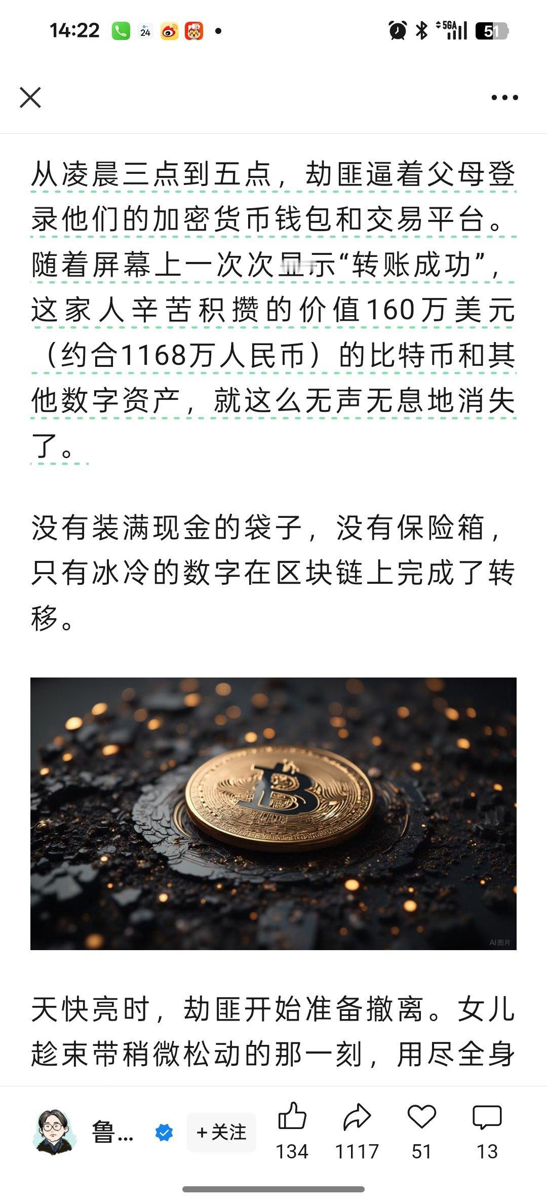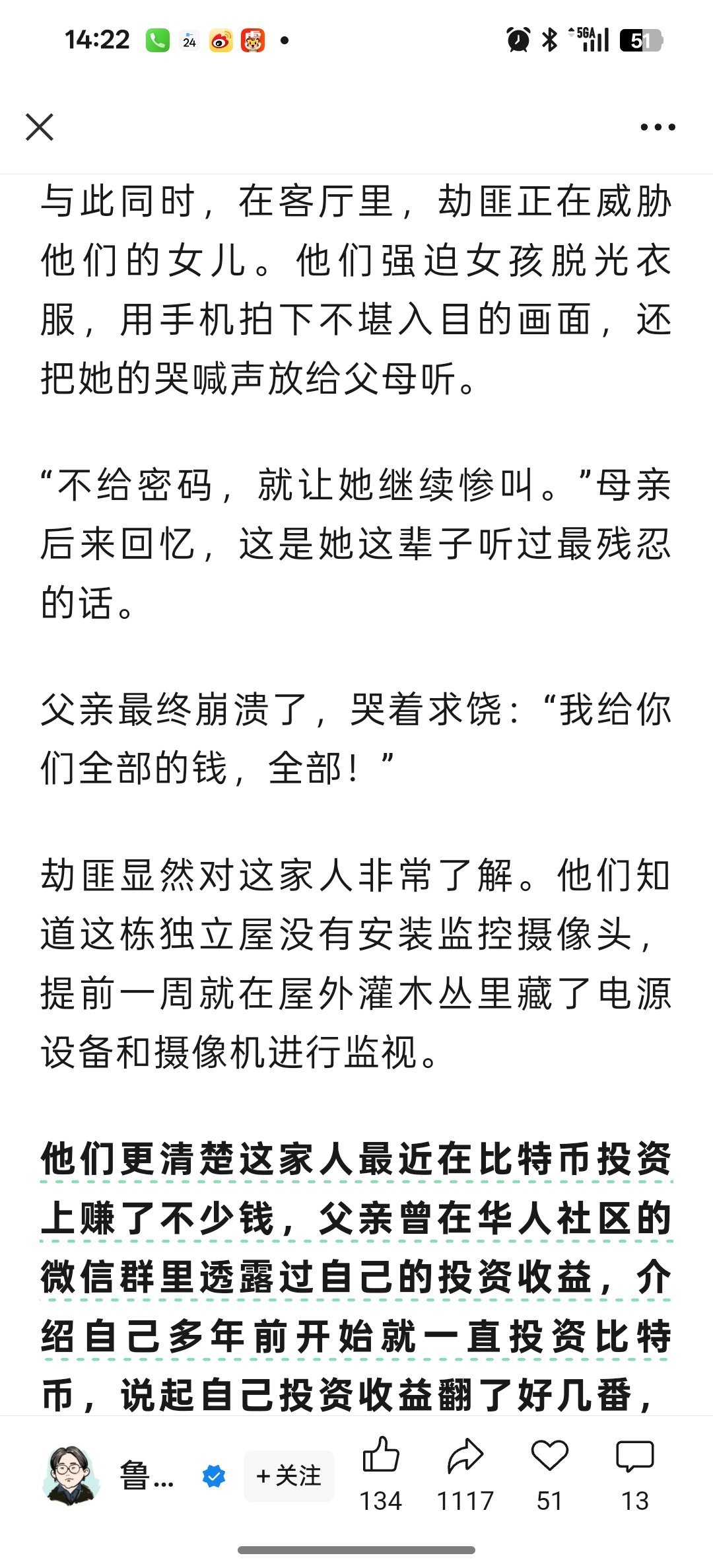 因为在聊天群里吹嘘自己投资获益,遇到歹徒踩点上门抢劫,被迫登录加密货币平台,把数字资产转出去。