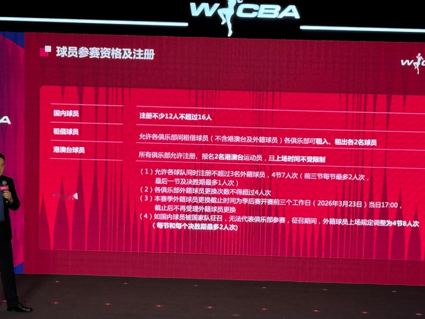 今天WCBA女篮召开赛季发布会,在赛程安排上,基本上围绕国家队的安排进行设置,以保证国家队的备战。新赛季WCBA将于11月30日开打;俱乐部杯赛:分两阶段(2026年2月6日-10日、3月2日-8日),采用AB组混合赛制提升对抗性;外援政策:允许注册3名外援,采用“4节7人次”;若国内球员被国家队征召,可调整为“4节8人次”。另外,女篮联赛也将推行工资帽制度,并已开始向各俱乐部征询意见。