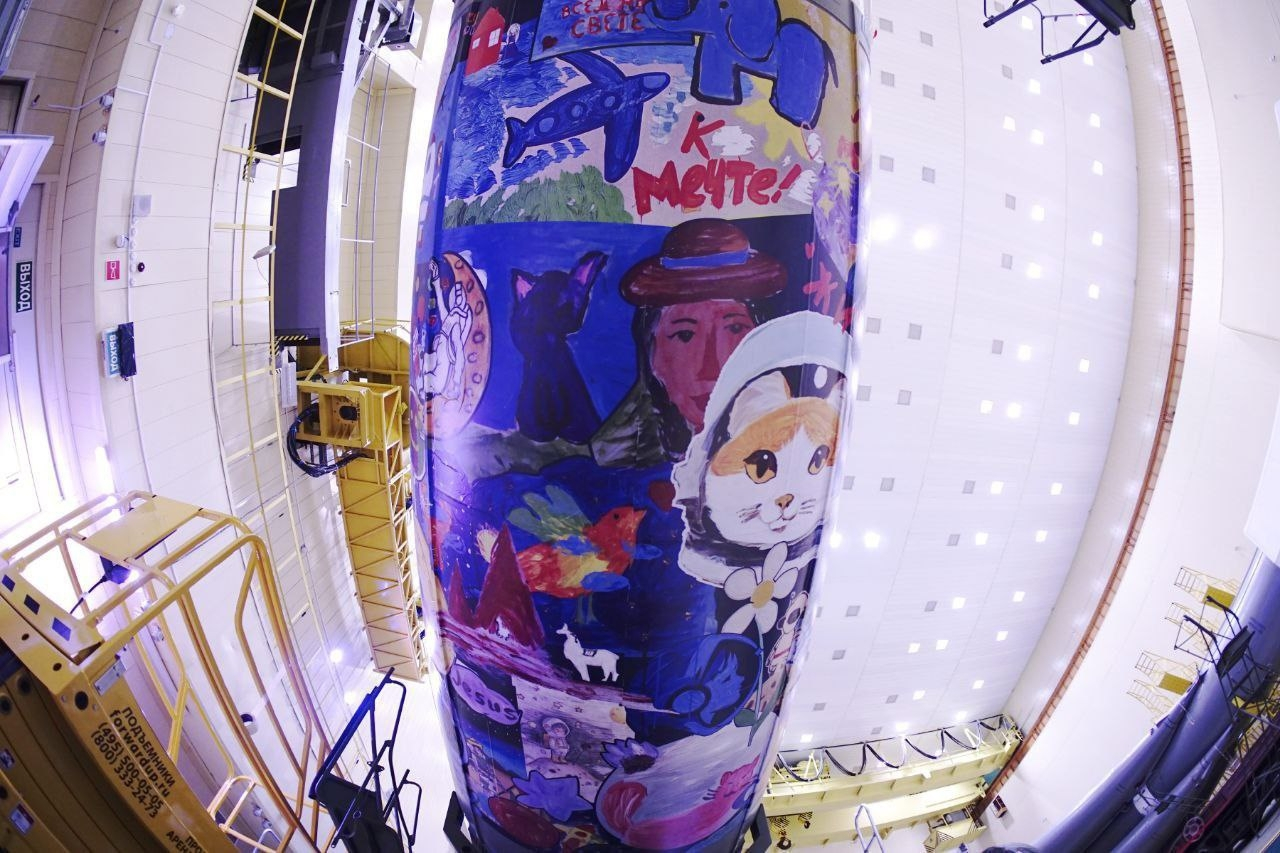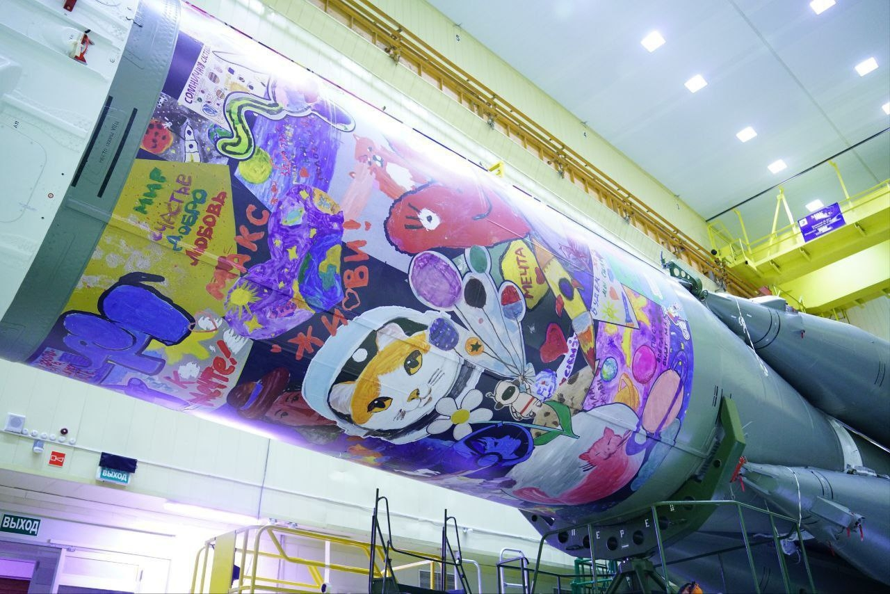 将于11月27日发射的俄罗斯联盟-2.1a运载火箭上装饰着色彩鲜艳的图画,这些是来自玻利维亚和巴西的患癌儿童的画作。联盟-2.1a火箭将把载有俄罗斯宇航员和一名美国NASA宇航员联盟MS-28载人飞船送往国际空间站。
