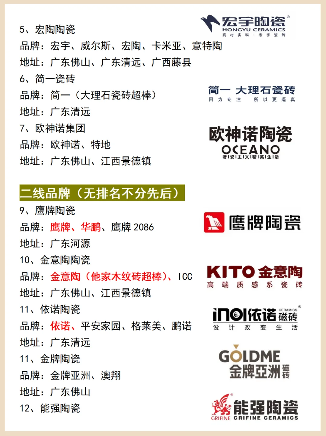 ✅公认一线:简一、马可波罗、蒙娜丽莎、东鹏、诺贝尔、宏宇、冠珠,其他好多二线都鼓吹自己是一线,卖高价