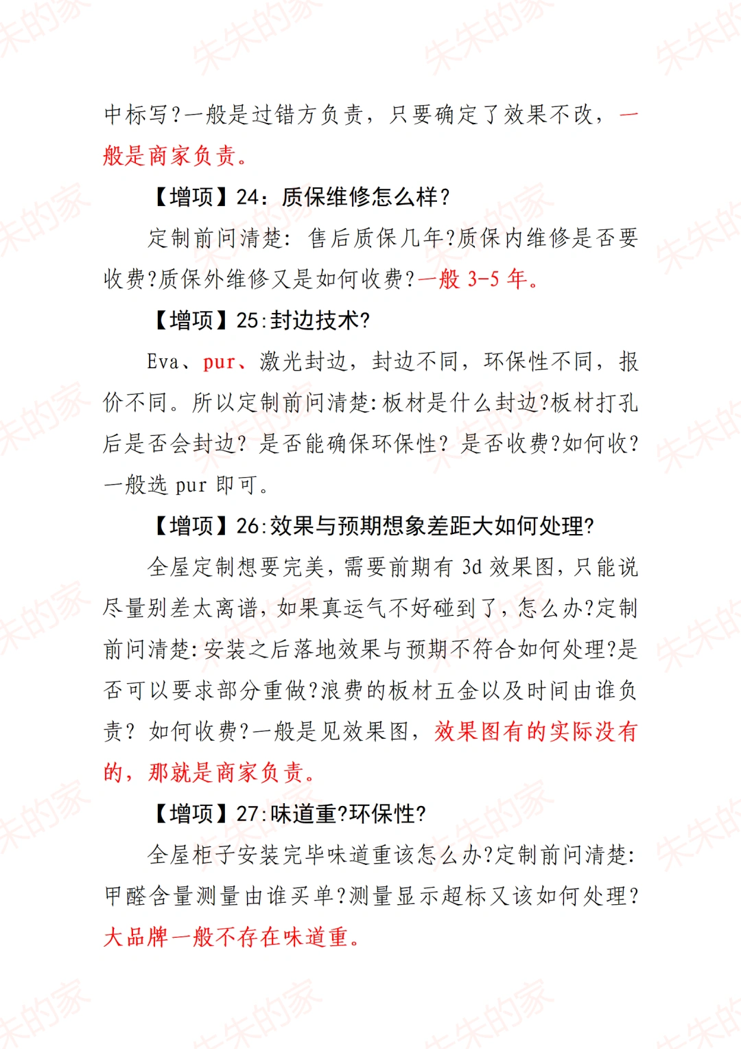 2️⃣全屋定制主要就是4大项目(板材、五金、设计和工艺、安装和售后),这27个问题,提前先搞懂,尤其是板材,里面增项多。