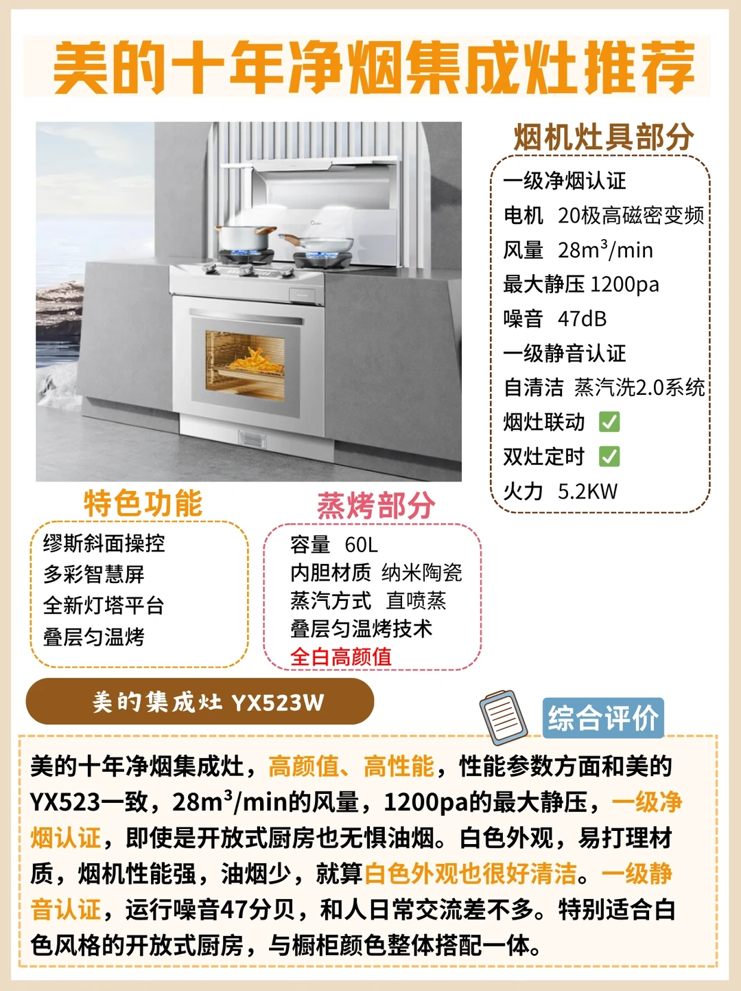 美的十年净烟系列YX523w,性能同美的YX523,白色外观。