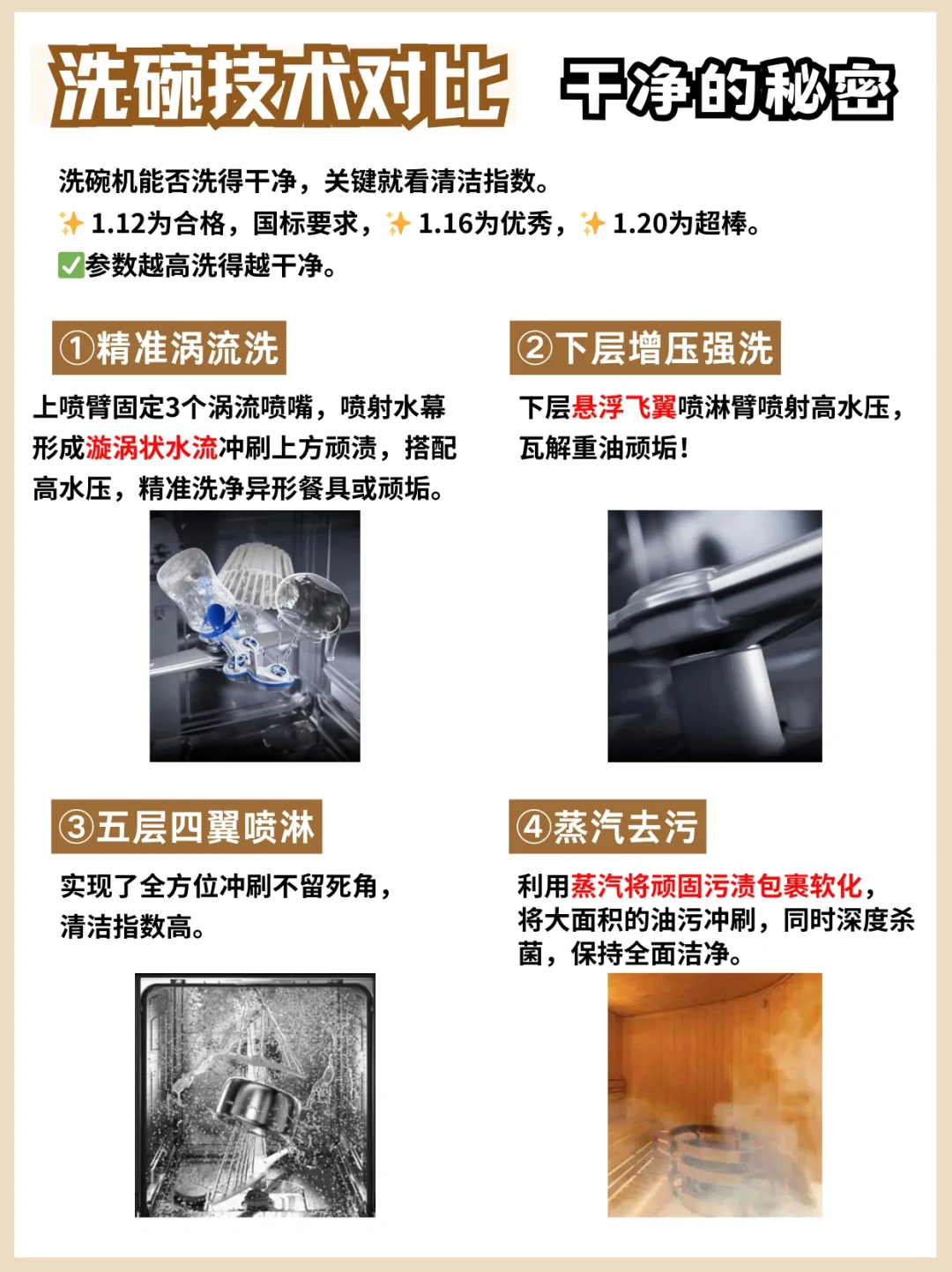 洗碗机能否洗得干净,关键就看清洁指数。✨ 1.12为合格,国标要求,✨ 1.16为优秀,✨ 1.20为超棒。参数越高洗得越干净。