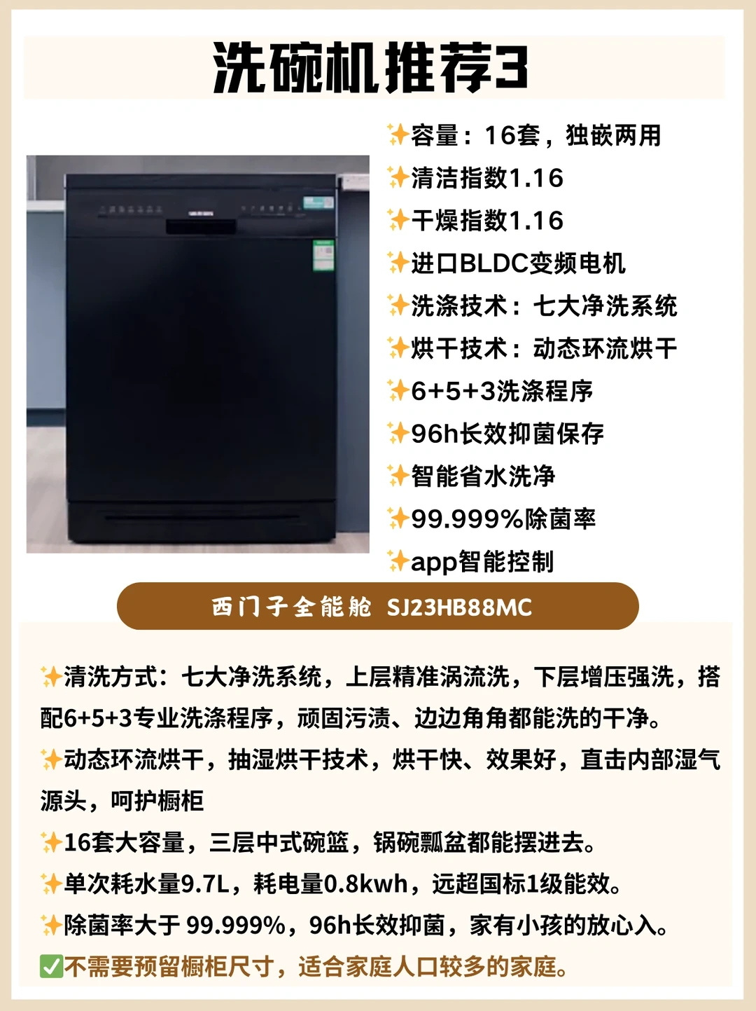 ③西门子全能舱,不需要预留橱柜尺寸,适合家庭人口较多的家庭。