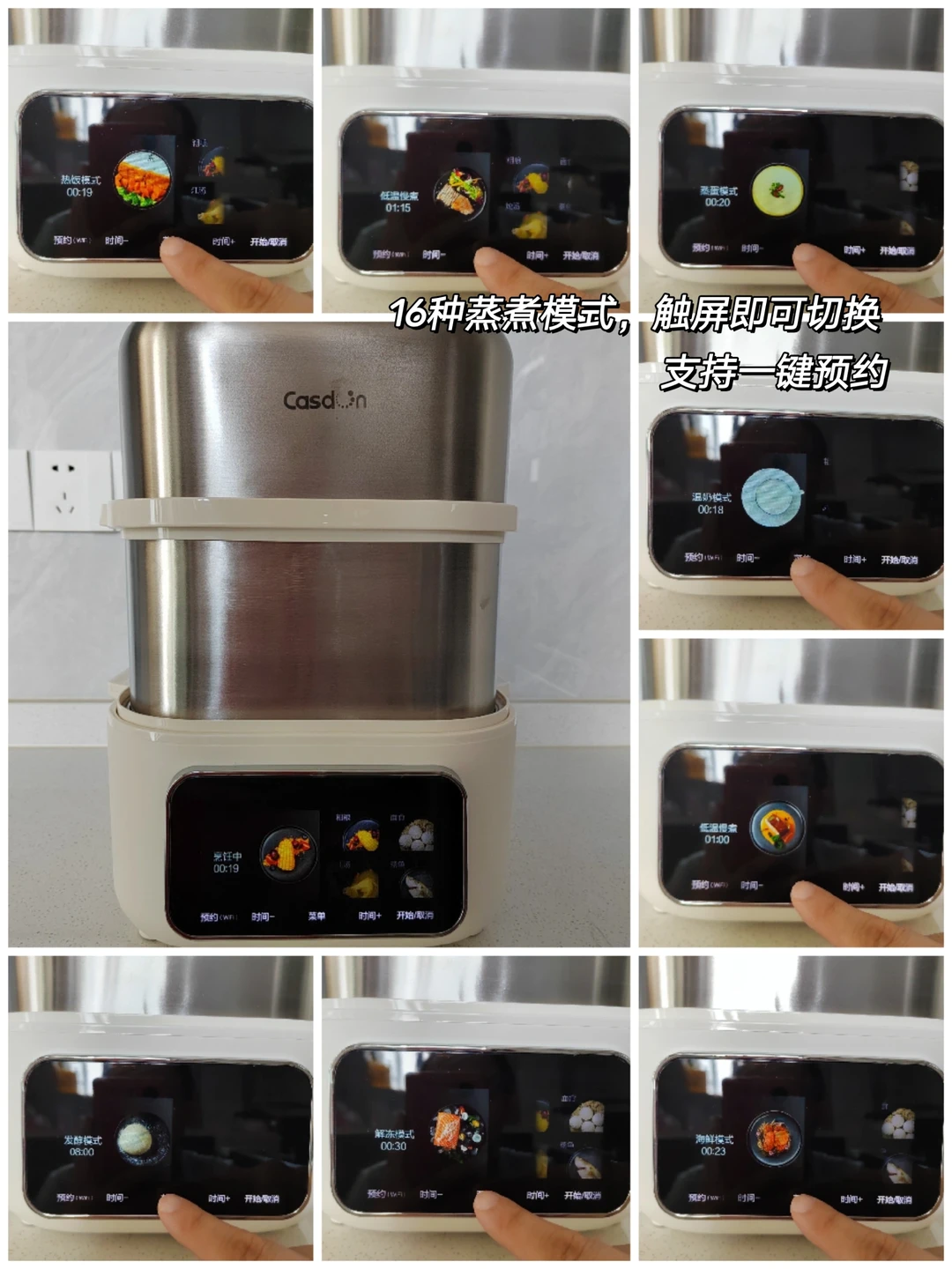 本来以为这么实惠的电蒸锅,功能什么的应该不怎么齐全。在家试了下,发现它有16种蒸煮模式,直接点击屏幕就能切换,无论是常见的炖汤、蒸鱼,还是解冻、蒸奶、燕窝,甚至是温奶、奶瓶消毒它竟然都能搞定。一机多用,不愧是北鼎电蒸锅的平替啊!