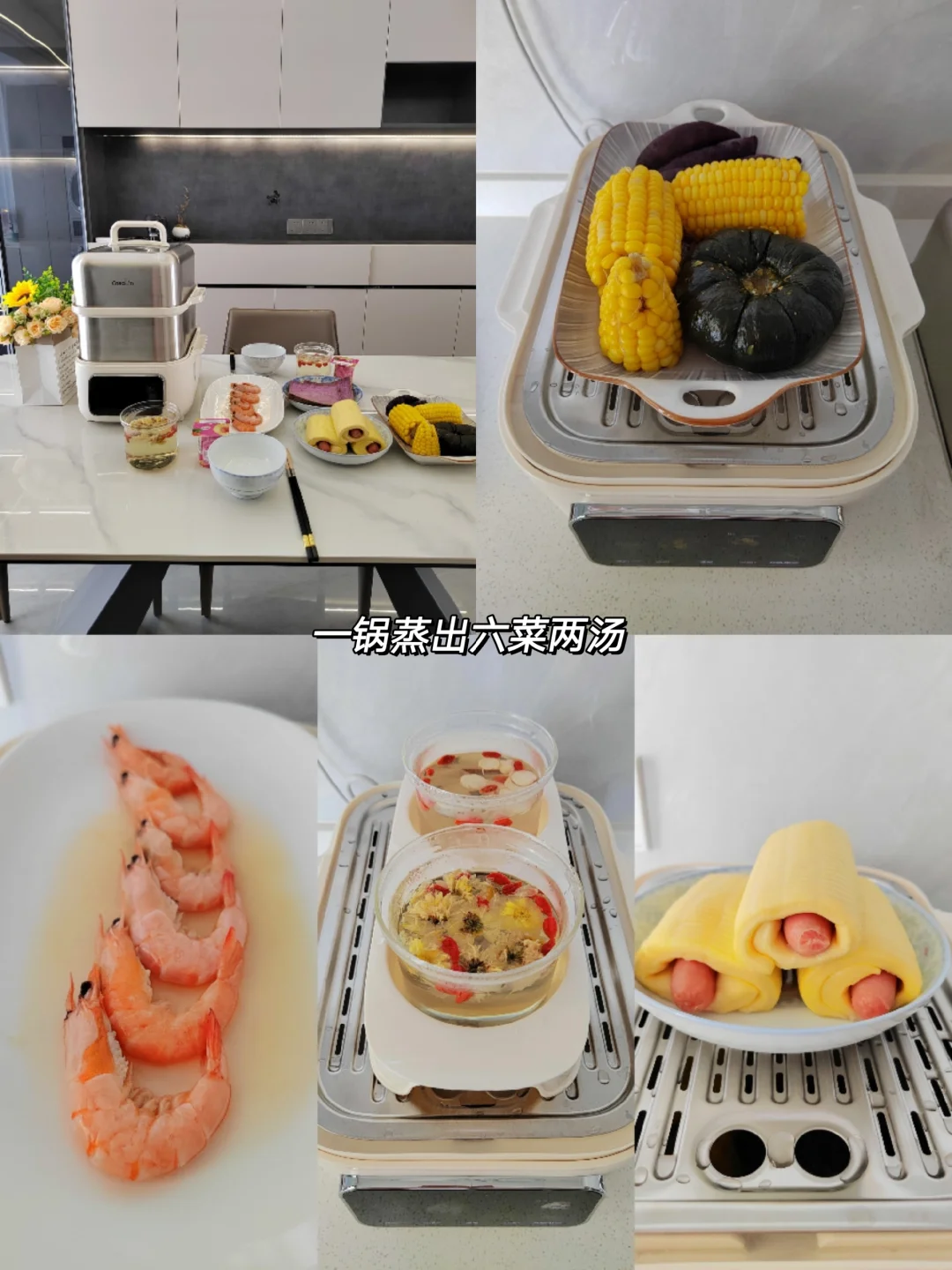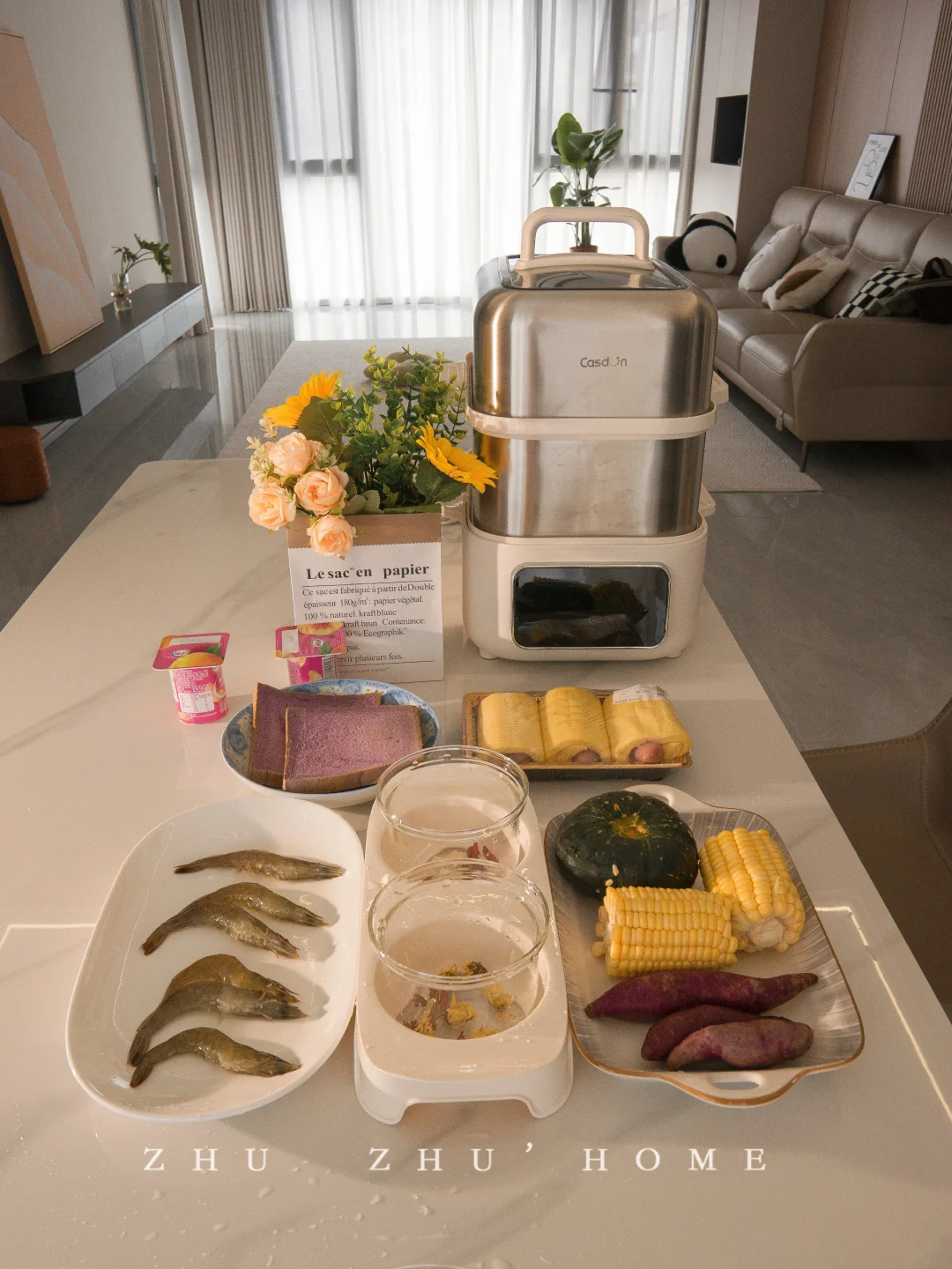 粗粮放下面蒸30分钟,馒头放上面蒸15分钟,中途直接掀开盖子换虾,十分方便,一锅全出。用它来做家里的一日三餐,可以节省不少时间。而且它还会自动断电,要是我一时忘记了电蒸锅还在运作,也不用担心锅里的水烧干,安全感倍增。