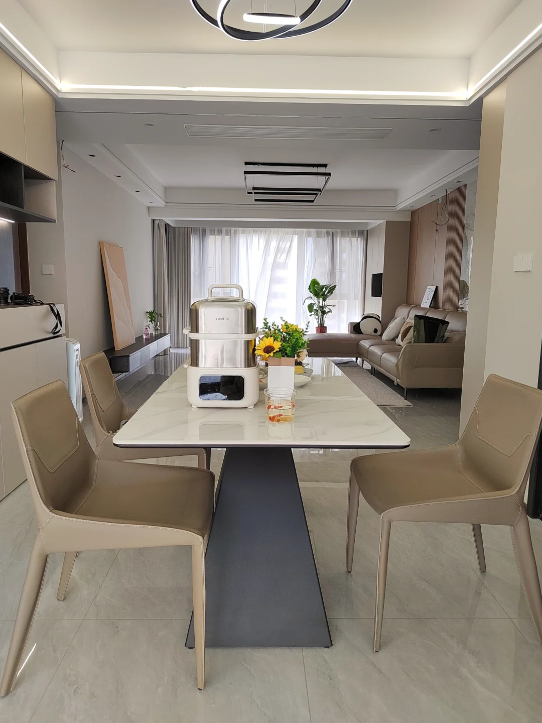 显示屏在窄边那头,占用橱柜不到30厘米,小厨房也不占地,上下双层设计,别看他体积小,一锅能蒸6个小碗菜2个汤。我已经可以想象到我那懒惰的夫人,每天都拿着这电蒸锅做饭的场景了。