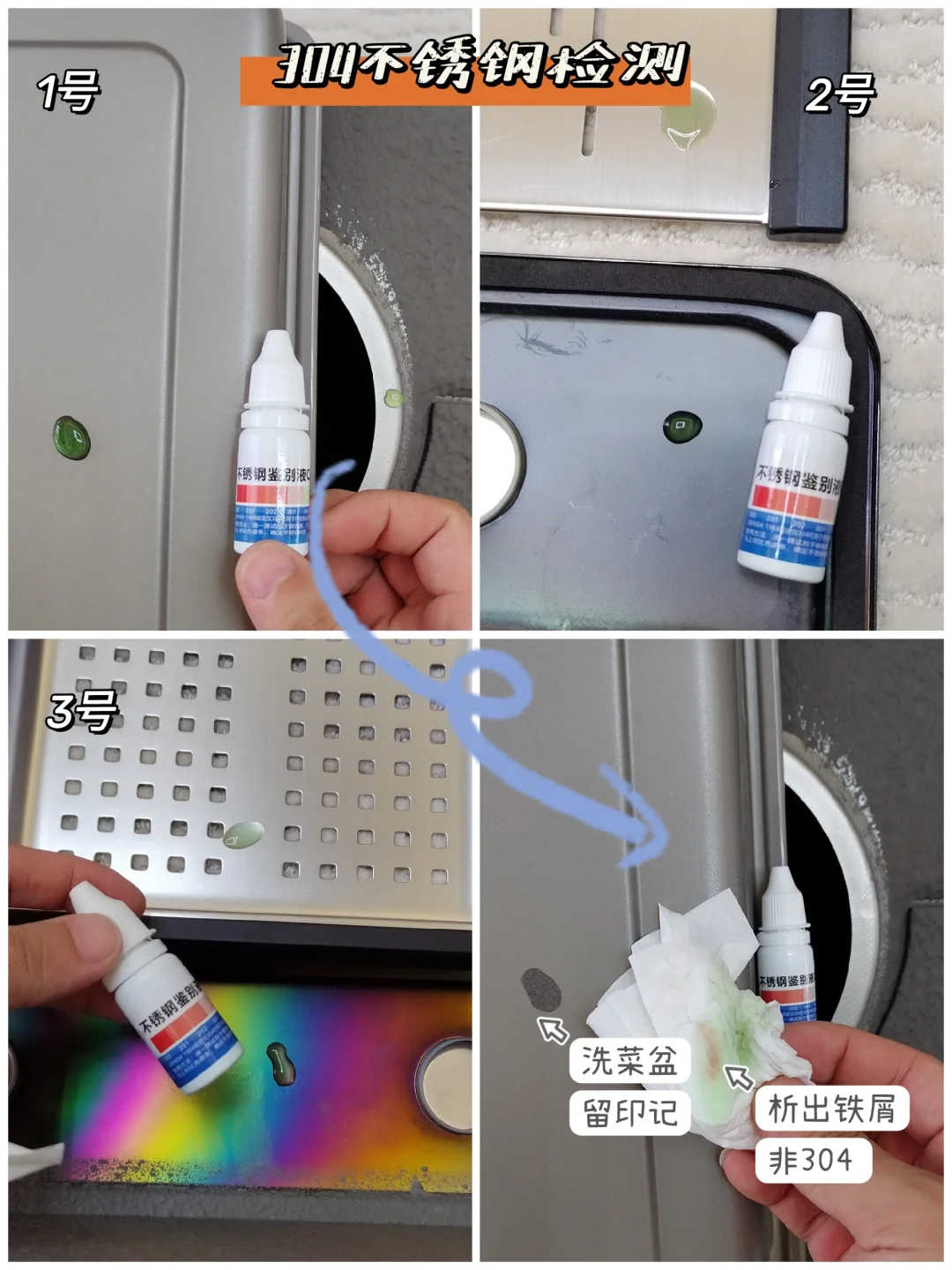 [种草R]不锈钢检测,工具:304检测水,变色为假304