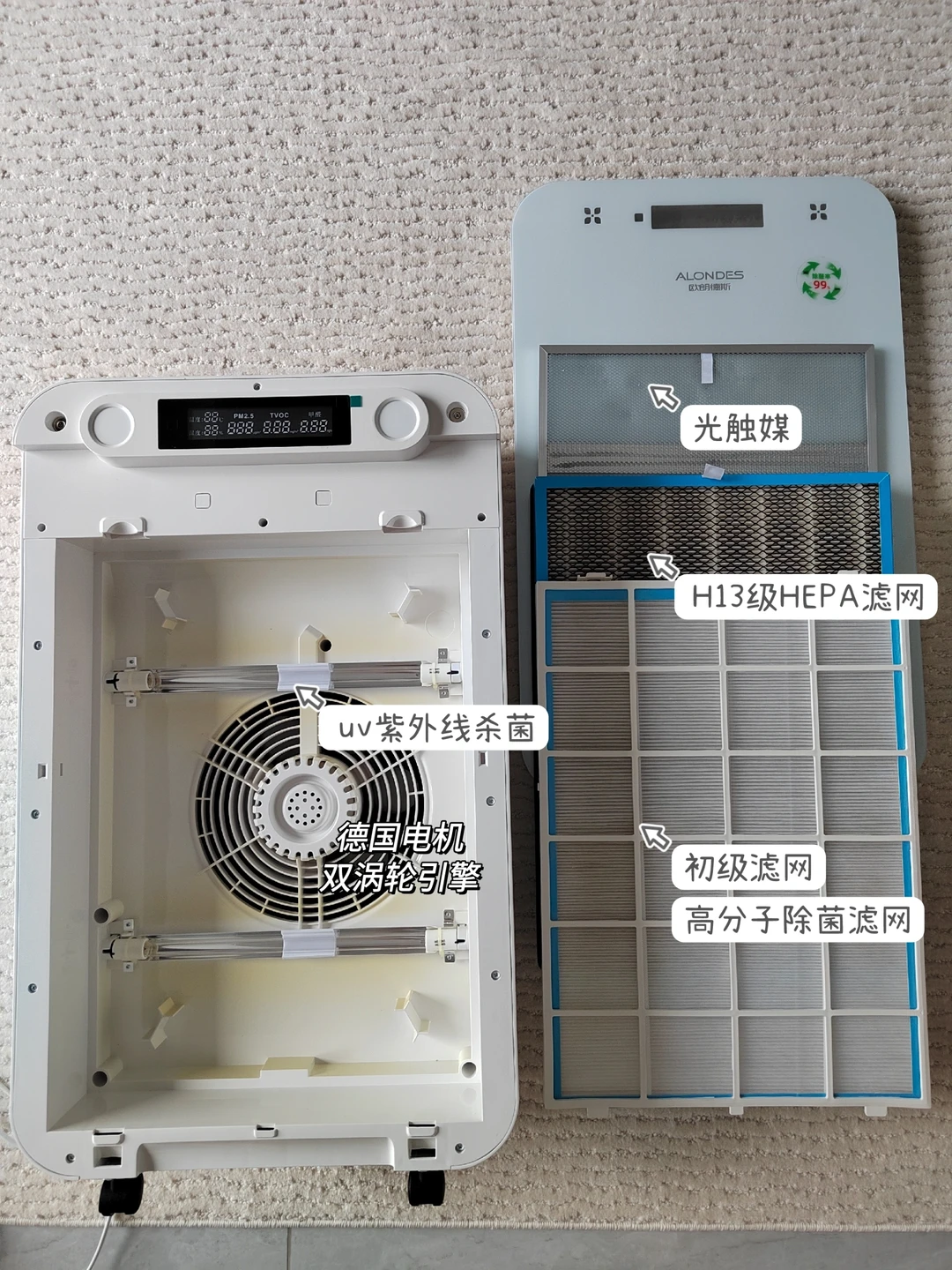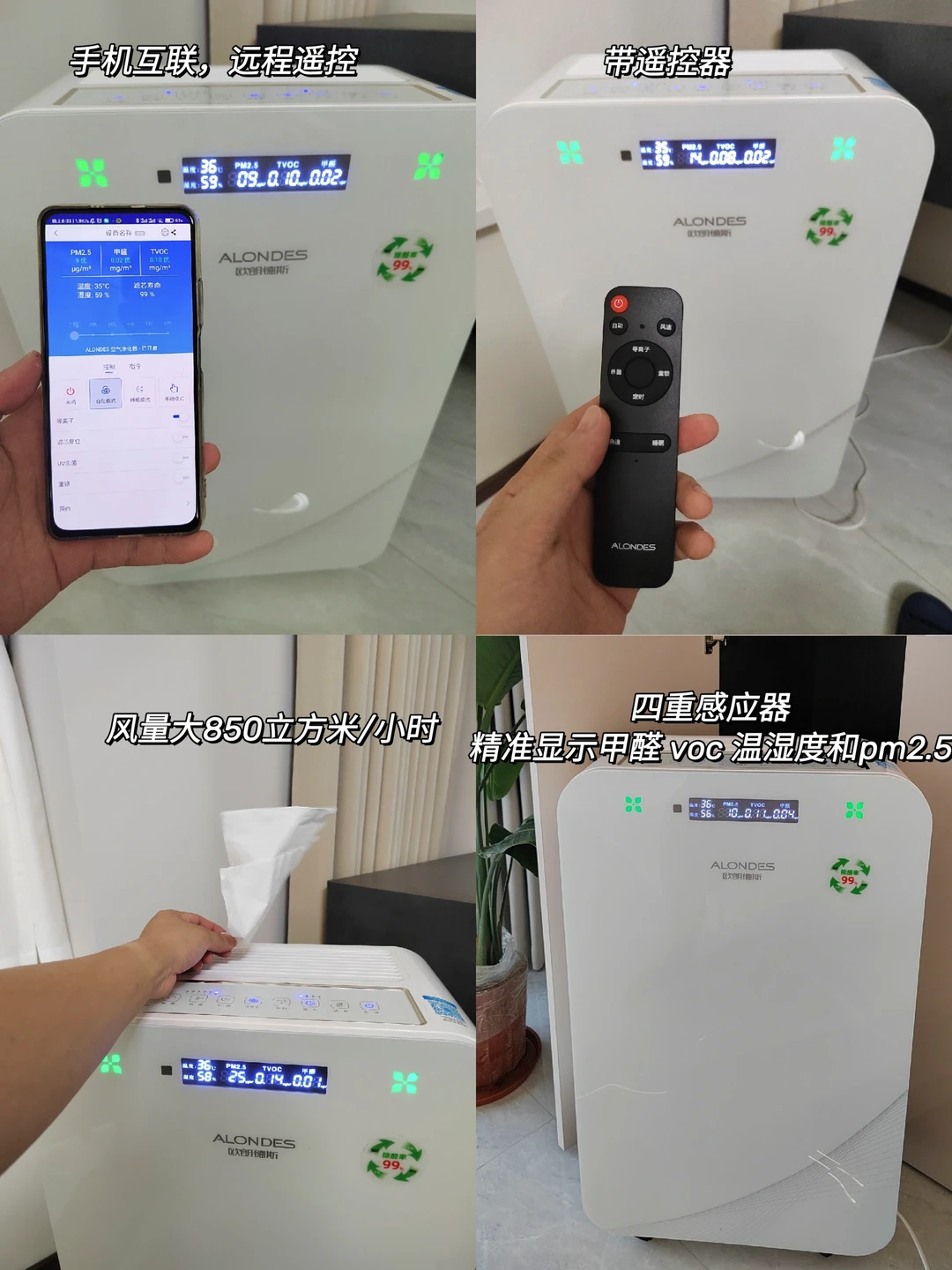 因为夏季需要开空调,高温又导致甲醛大量释放,为了放心,使用了这台欧朗德斯空气净化器A5s,选的时候下足功夫