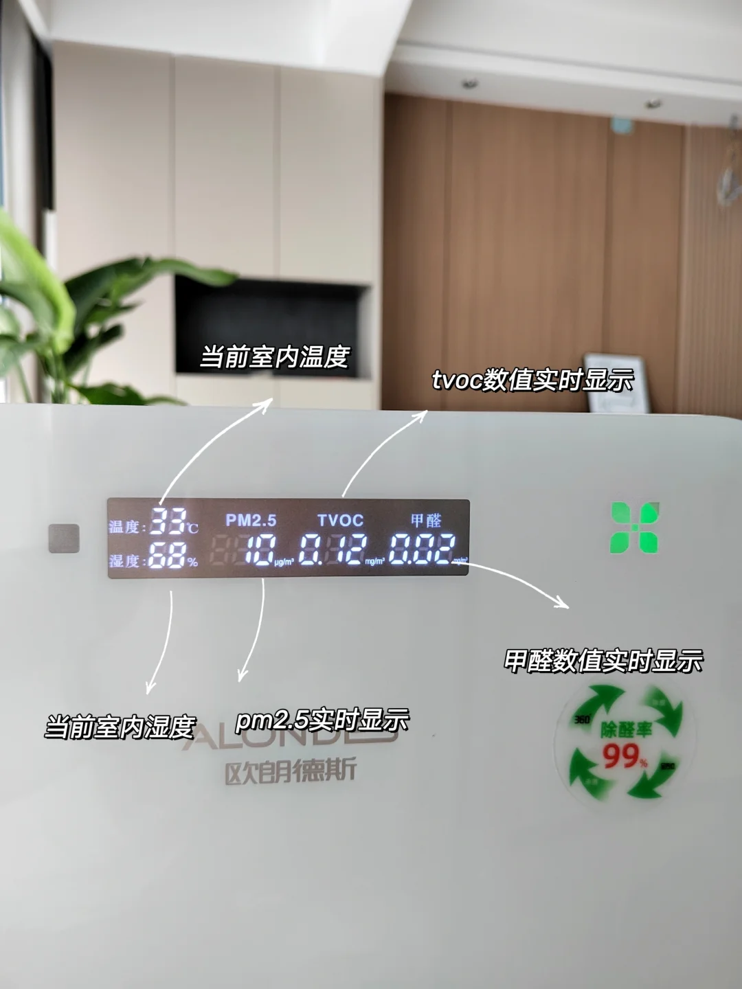 ①选有jia醛、VOC和PM2.5数值实时显示,不再jia醛焦虑
