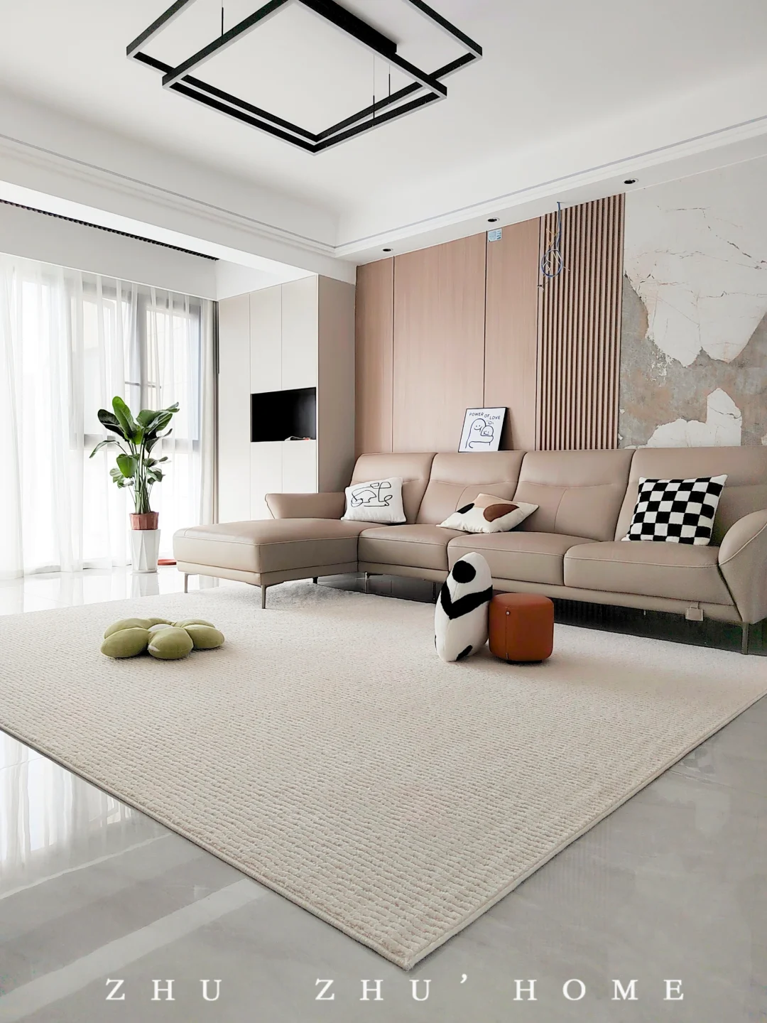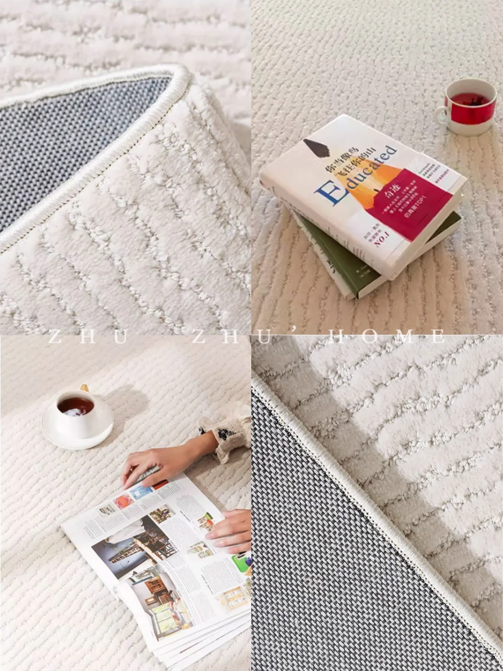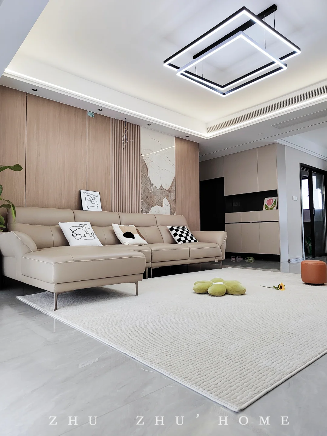 ②铺上地毯感觉客厅有了灵魂,选短毛不选长毛,比沙发大一点,厚度超过10mm的,素色耐看,尤其注意防水性能要好,饮料茶水倒地毯上擦掉即可