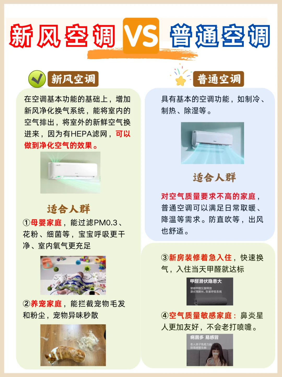 我是朱朱,爱研究的985理工男。很多粉丝问,新房装修、孩子还小,担心甲醛又想提前入住,怎么选空调?养宠家庭,宠物毛发多,异味重,怎么选空调?家人鼻炎,不敢开空调,怎么办?