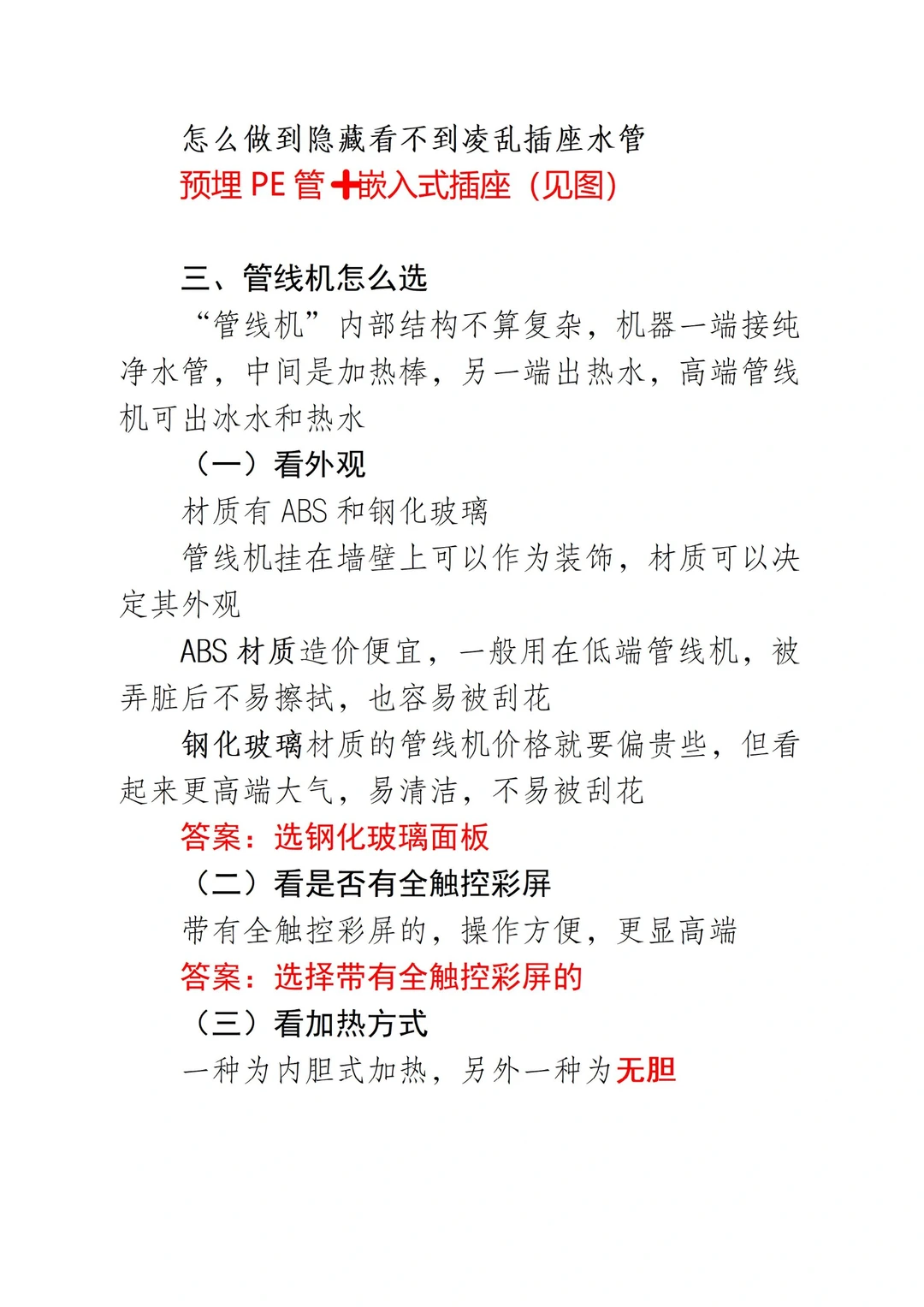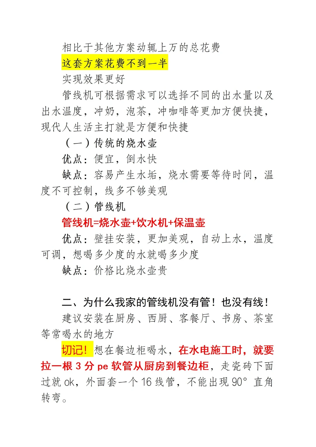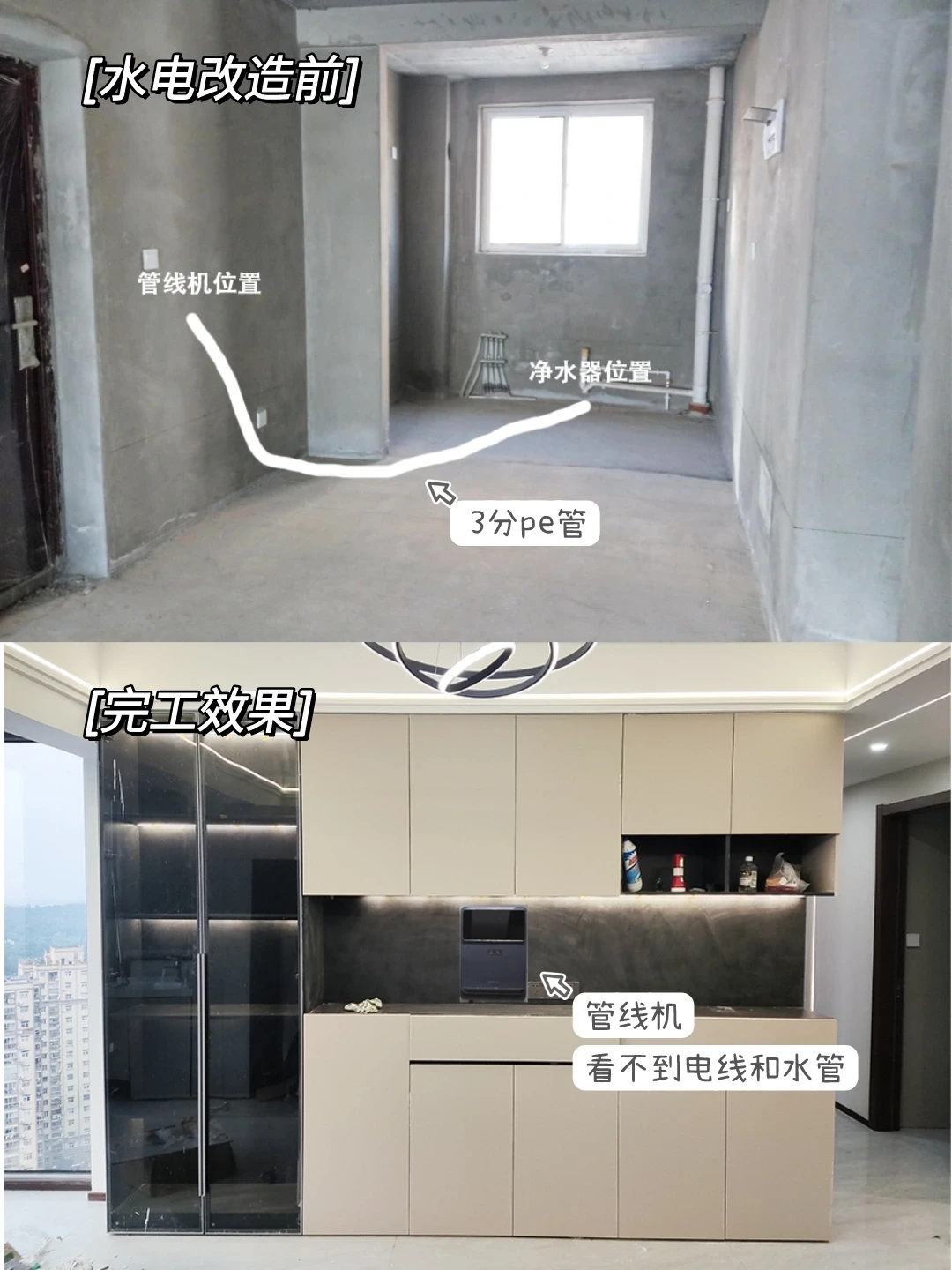 切记❗想在餐边柜喝水,可以装一台管线机,在水电施工时,就要拉一根3分pe软管从厨房到餐边柜,同时做好预埋,避免凌乱。找客服要一张管线机背面的尺寸图片