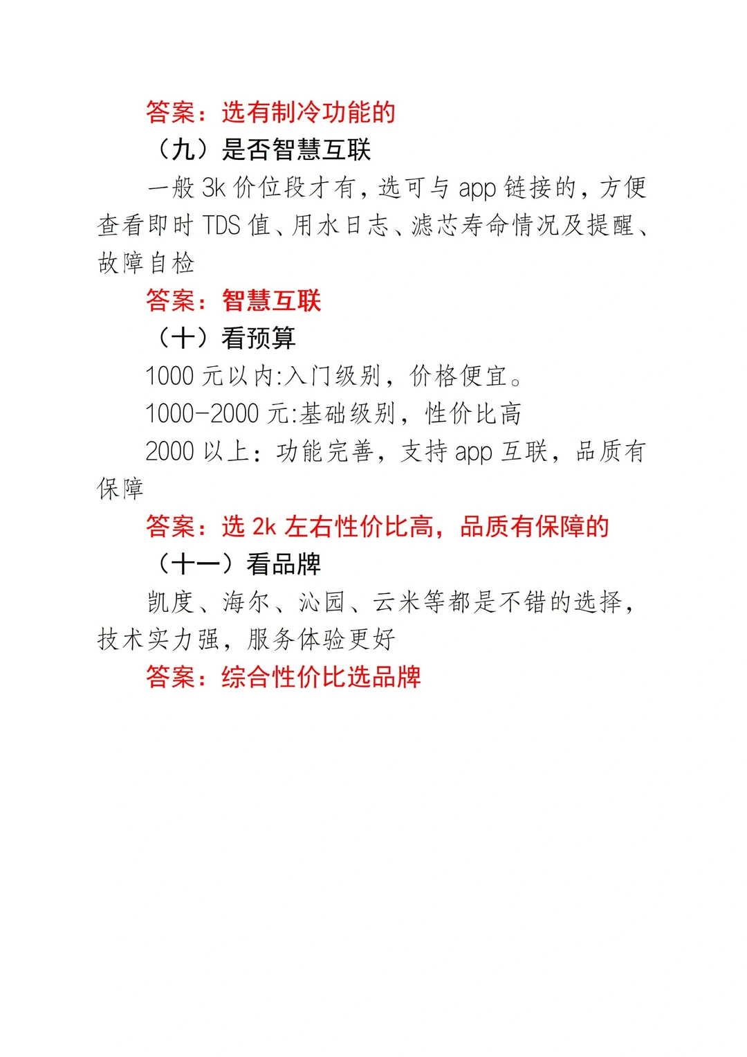 ✅答案:一般3k价位段才有,选可与app链接的,方便查看即时TDS值、用水日志、滤芯寿命情况及提醒、故障自检