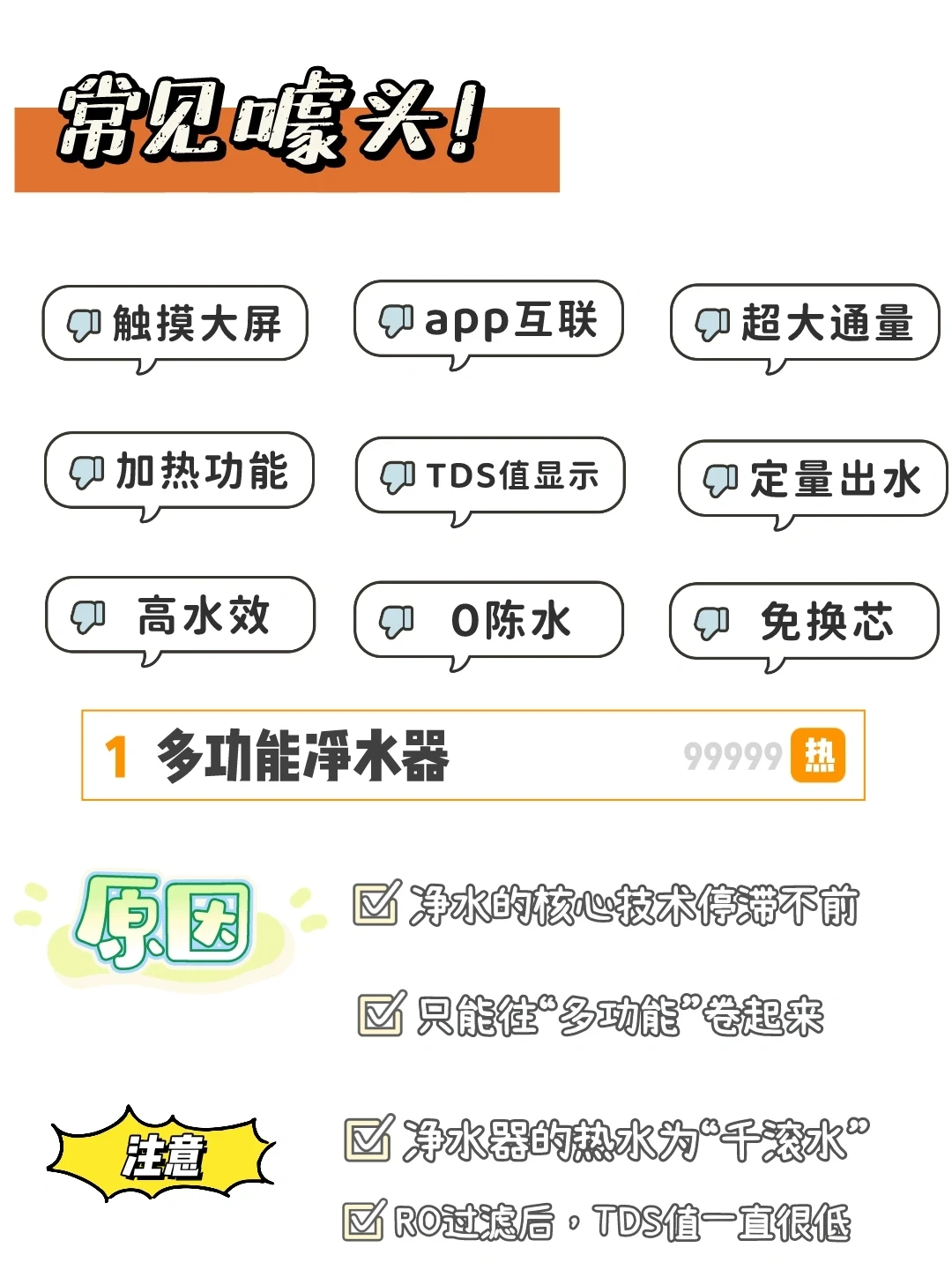 为了掩盖核心净水功能方面的不足,目的就是卖高价