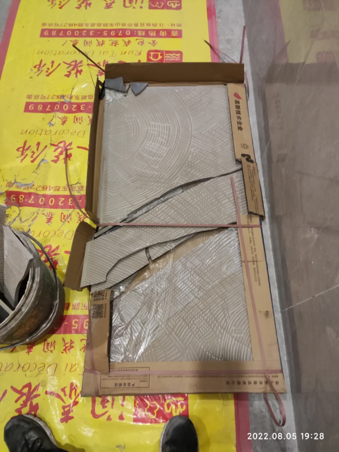 第一天来,路过把两片60*120瓷砖碰碎,我当场看见,骗我说是风吹倒,我没说话,见图九