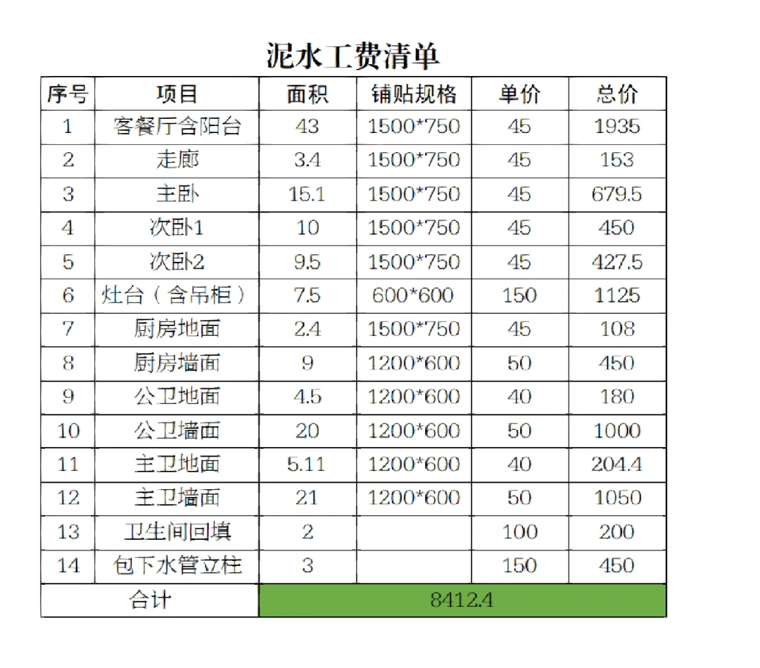 按照约定,总价7k,三室两厅一厨,实在做不出的话,给他加几百块