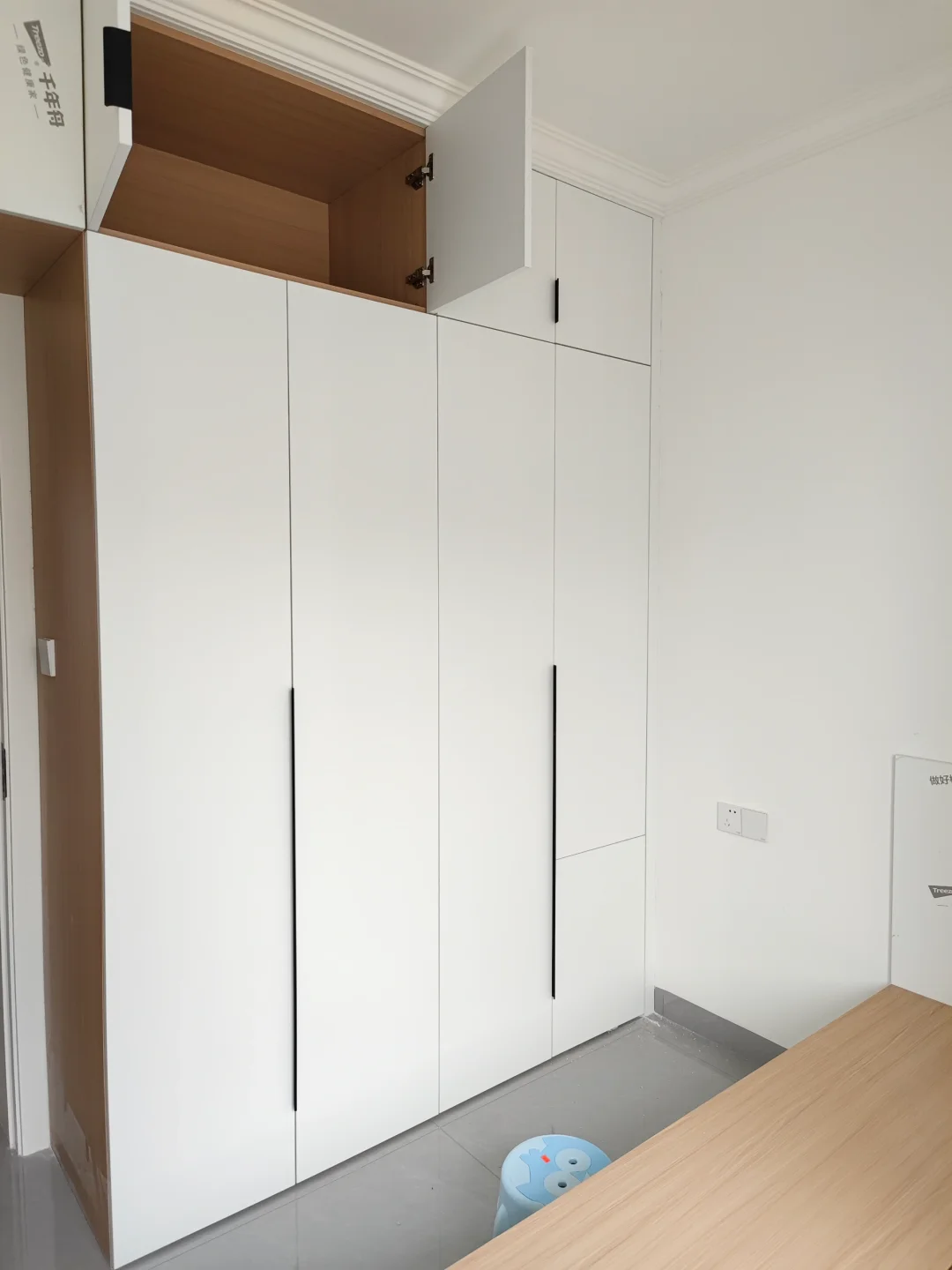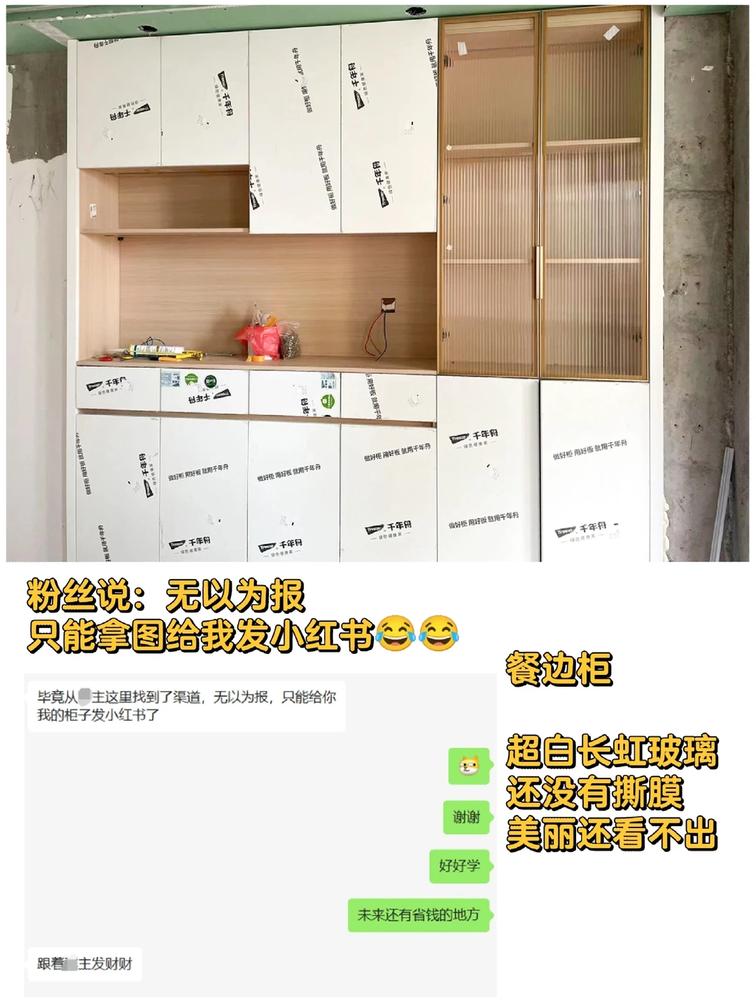 ▶颜色搭配是关键,颜色选得对,基本不会翻车,粉丝绝大多数选择暖白柜门+原木色柜体居多,这款千年舟柜门,名字叫冷白,其实是暖白