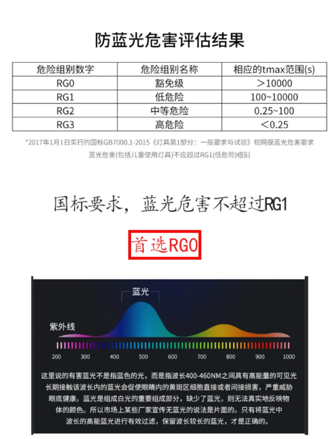 国标蓝光等级分为Rg0~Rg3,问商家要光谱图,看蓝光数值是不是在较低范围