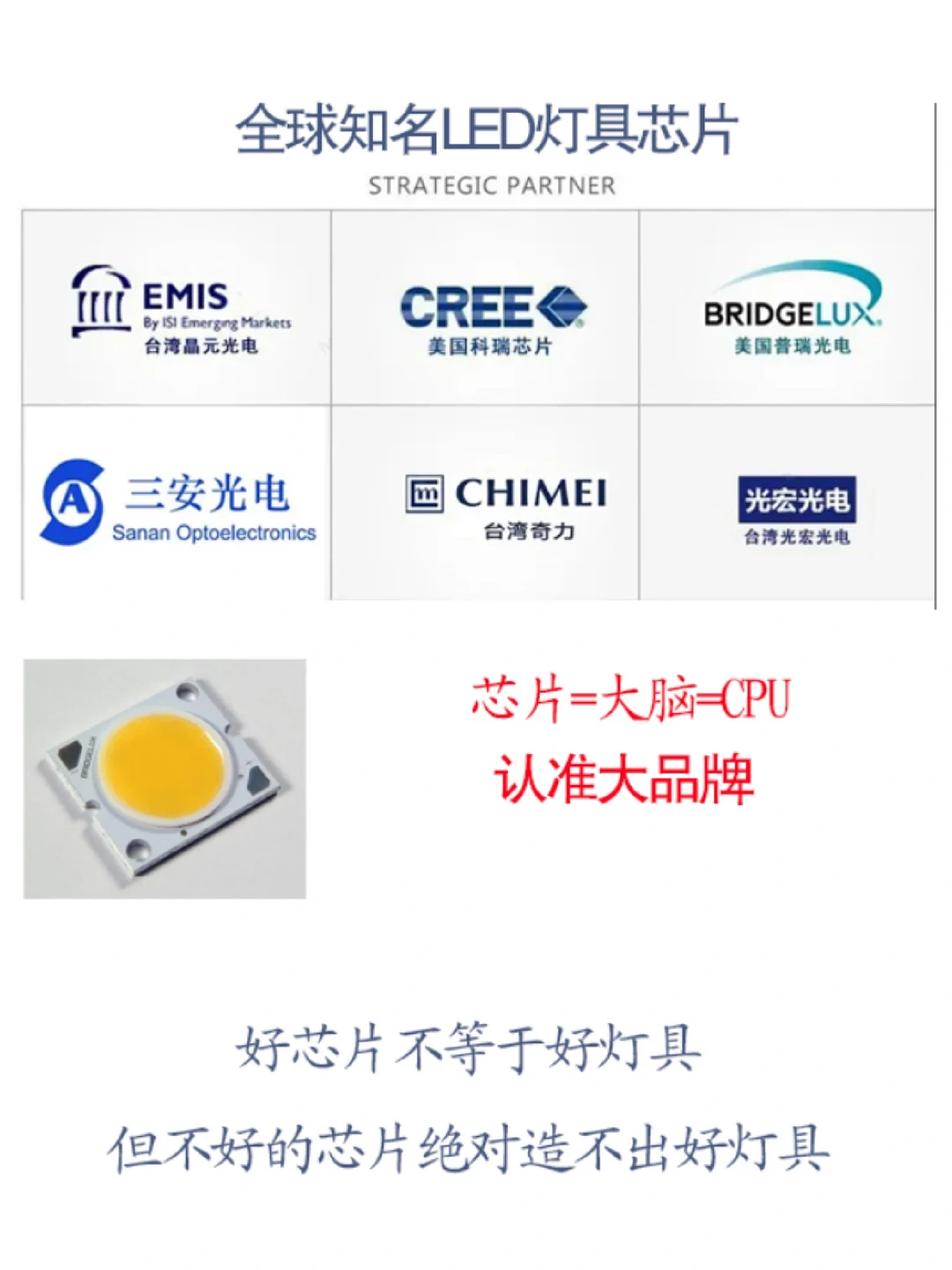 芯片就像手机和电脑的CPU,好的芯片才能更好的发光,质量也有保障