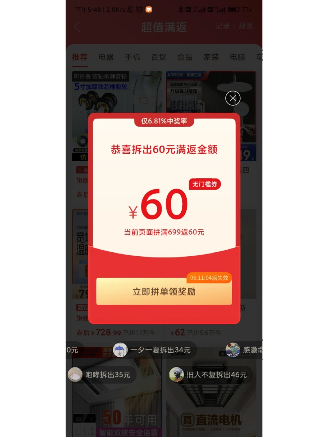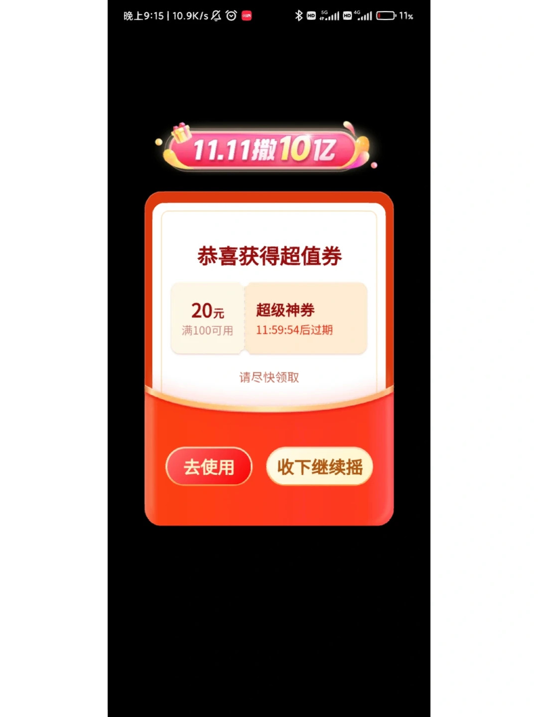 [五R]首页,每日摇红包,把每天的15次机会摇掉,一般会掉100-20,500-100等几张优惠券,比较有用。