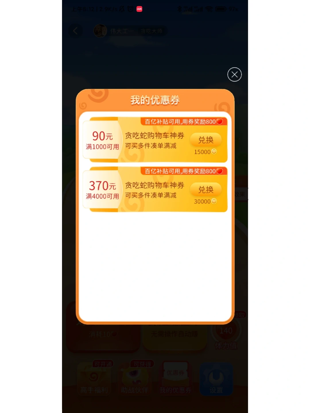 [四R]种菜的界面那里,点击玩贪吃蛇,玩5局左右,也有同样的大额优惠券弹出来。