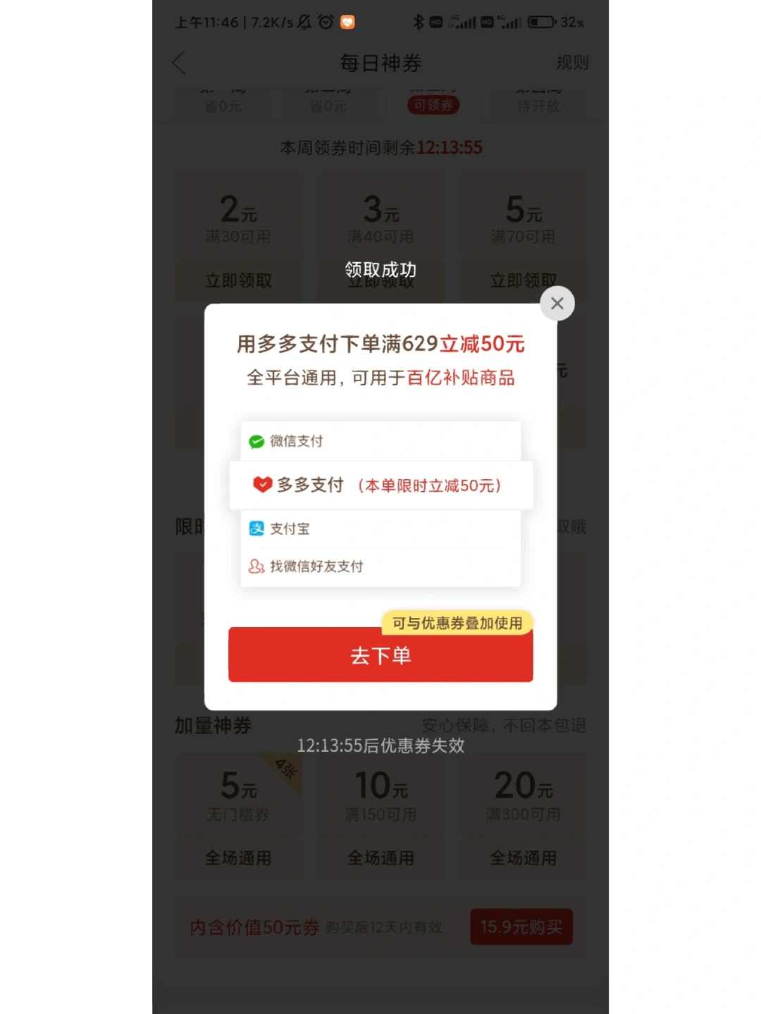 [七R]这个是多多支付叠加券,所有付款前,都可以看这条。大额券的话,在个人中心,省钱月卡里面点进去。出现629-50,749-65等券,这个券是支付券,叠加所有的券。小额的话,就在多多钱包那里,一般会出来30-1,这种的。