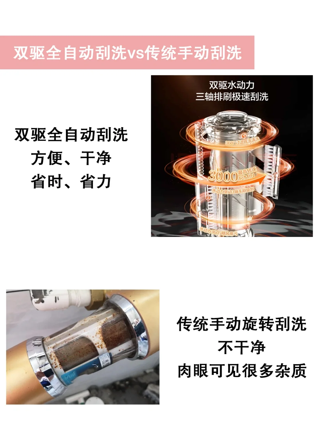 这款美的水动力前置过滤器,有反冲洗双驱全自动刮洗功能,每分钟可达3000转,自动刮洗滤网