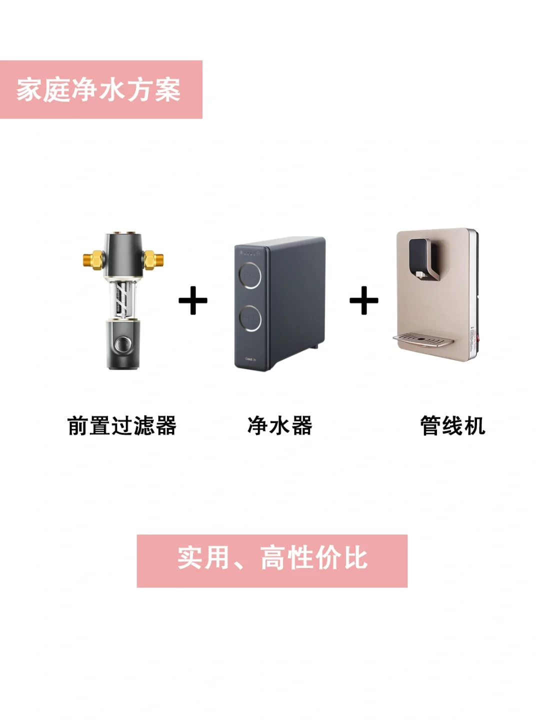 很早之前就确定了家庭饮用水解决方案:前置过滤器+净水器+直饮机