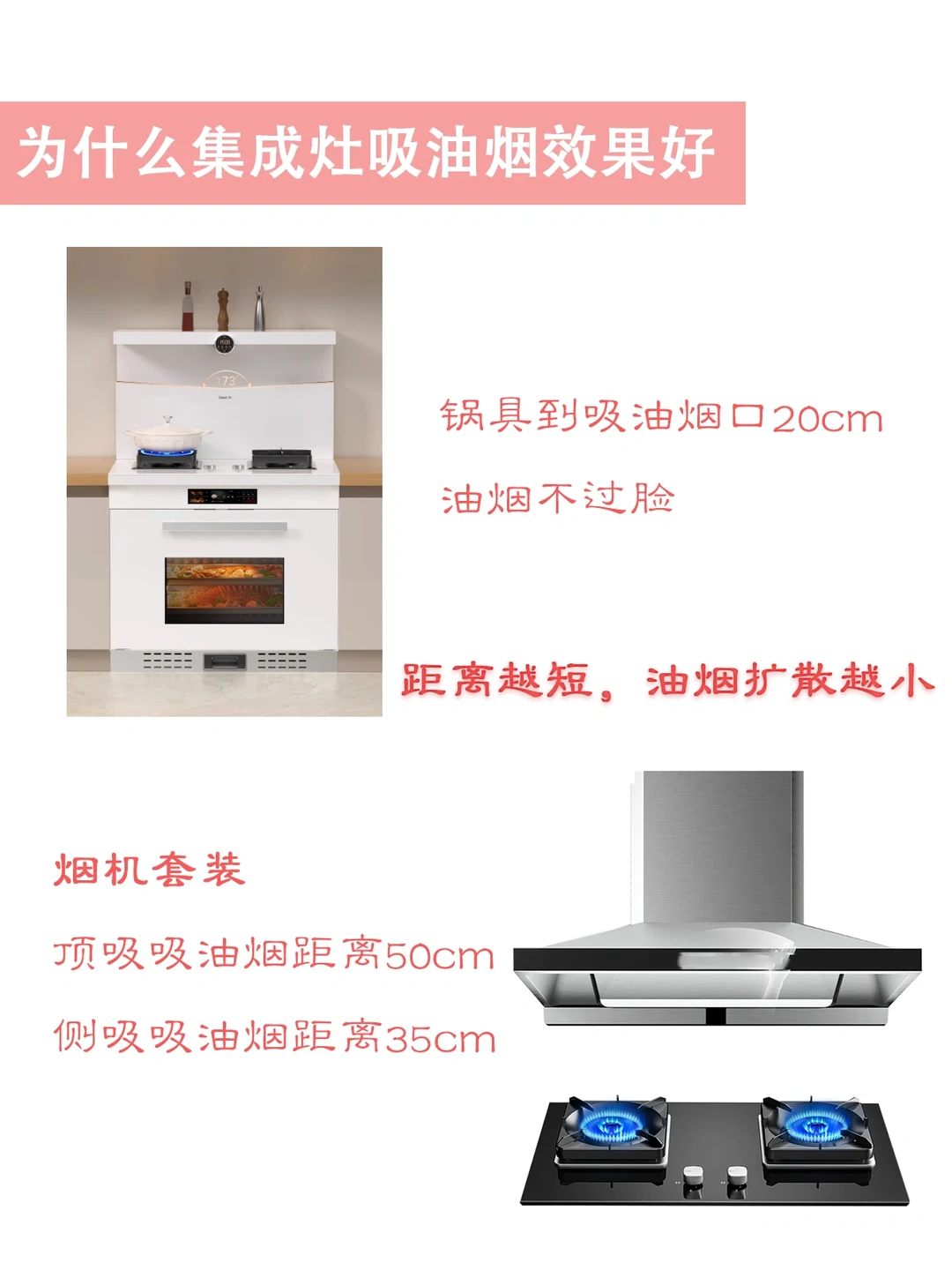 1⃣更近的吸烟距离,很多人讨论侧吸还是顶吸好,集成灶直接盖脸上吸💪