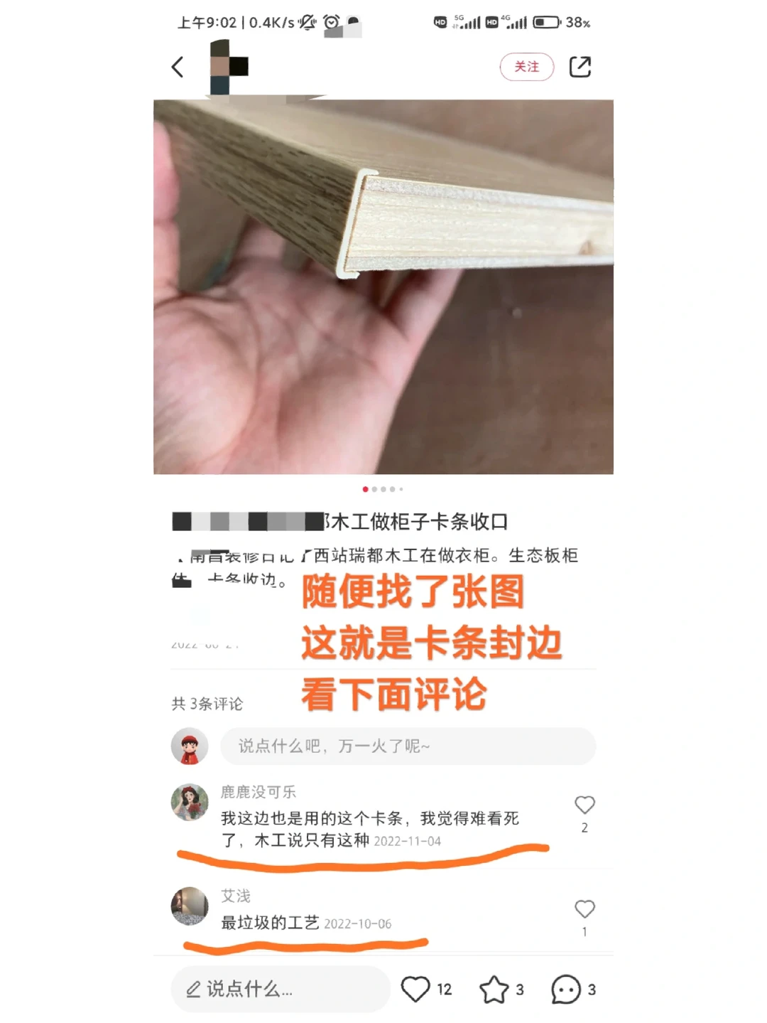 得知木工封边是❎卡条封边,真的心里介意,特别丑,见图