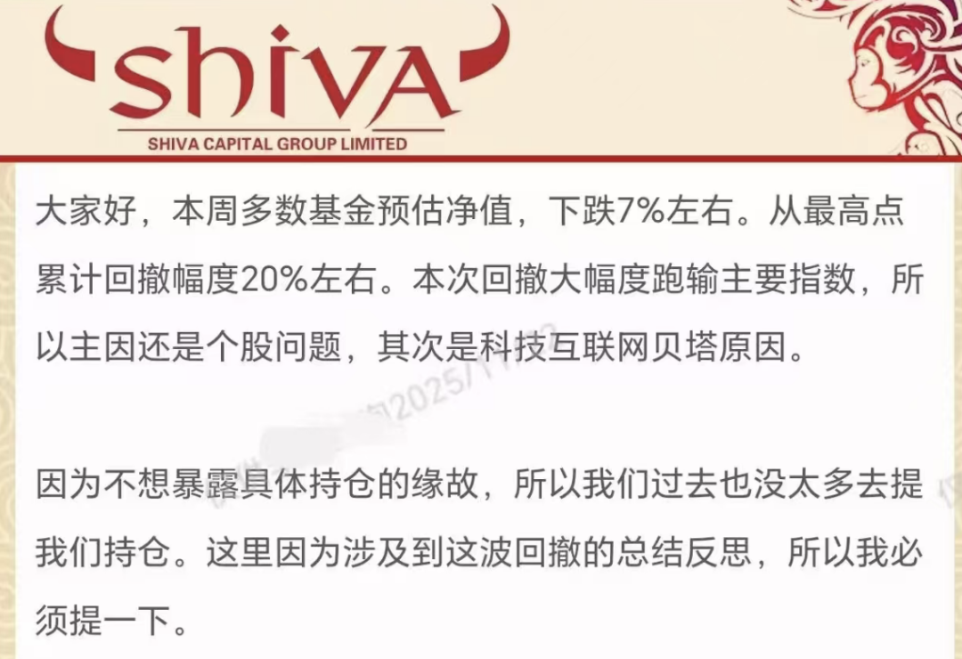 产品净值累计回撤约20%,百亿私募希瓦资产创始人、首席投资官梁宏发文致歉。