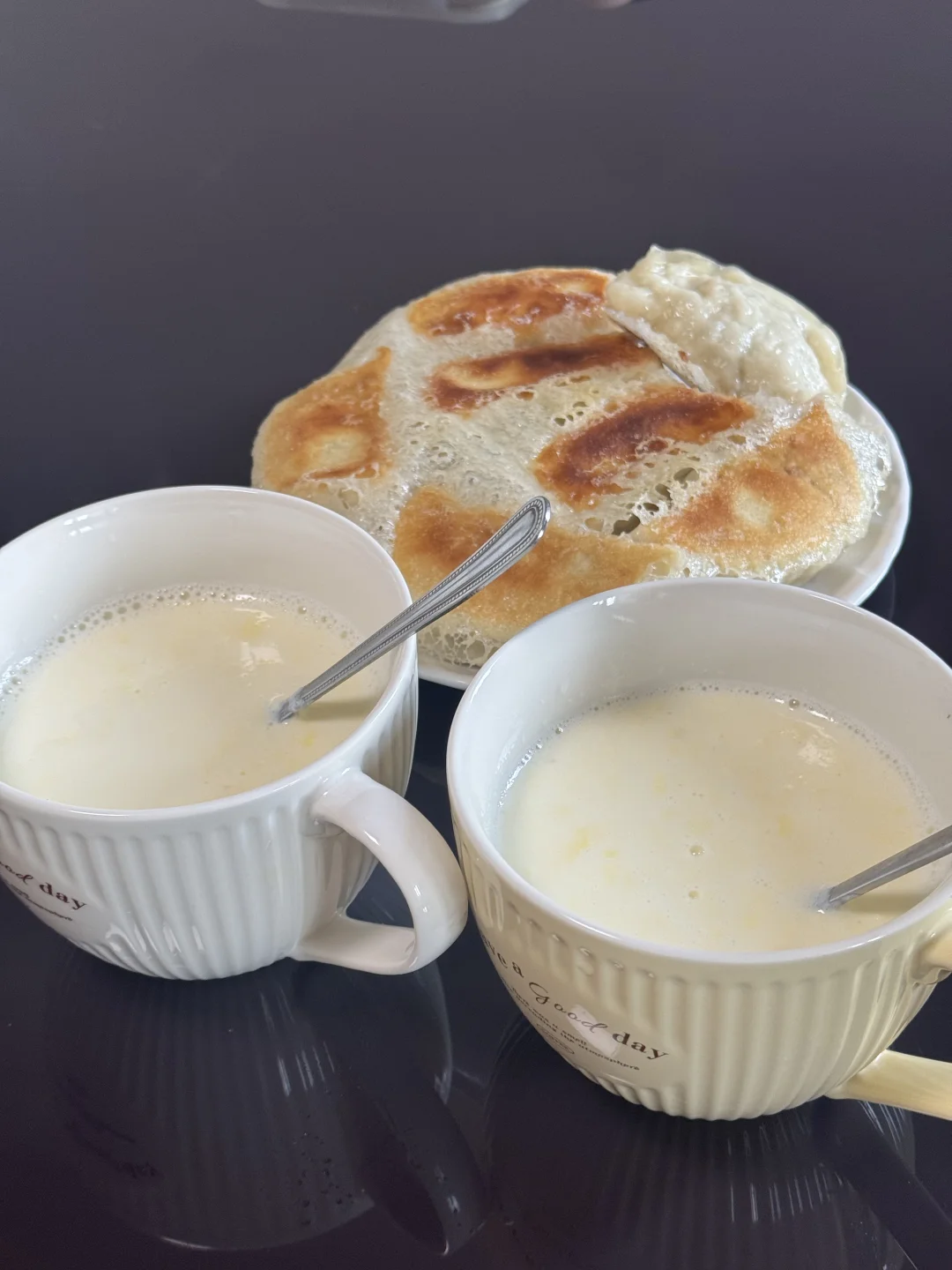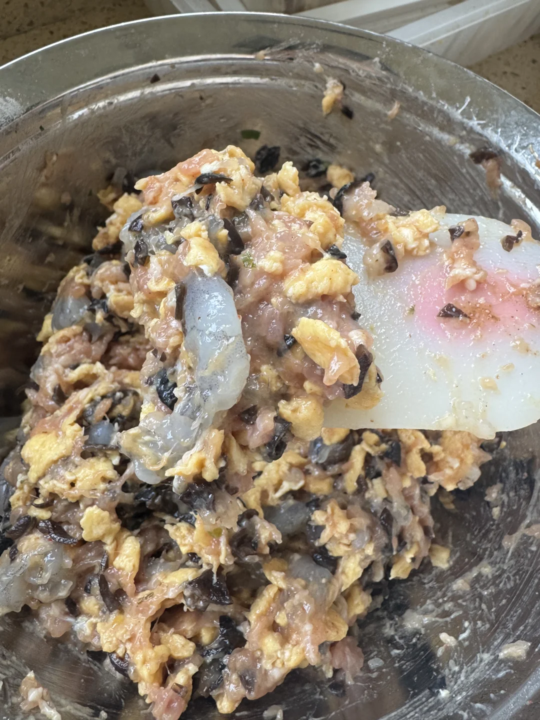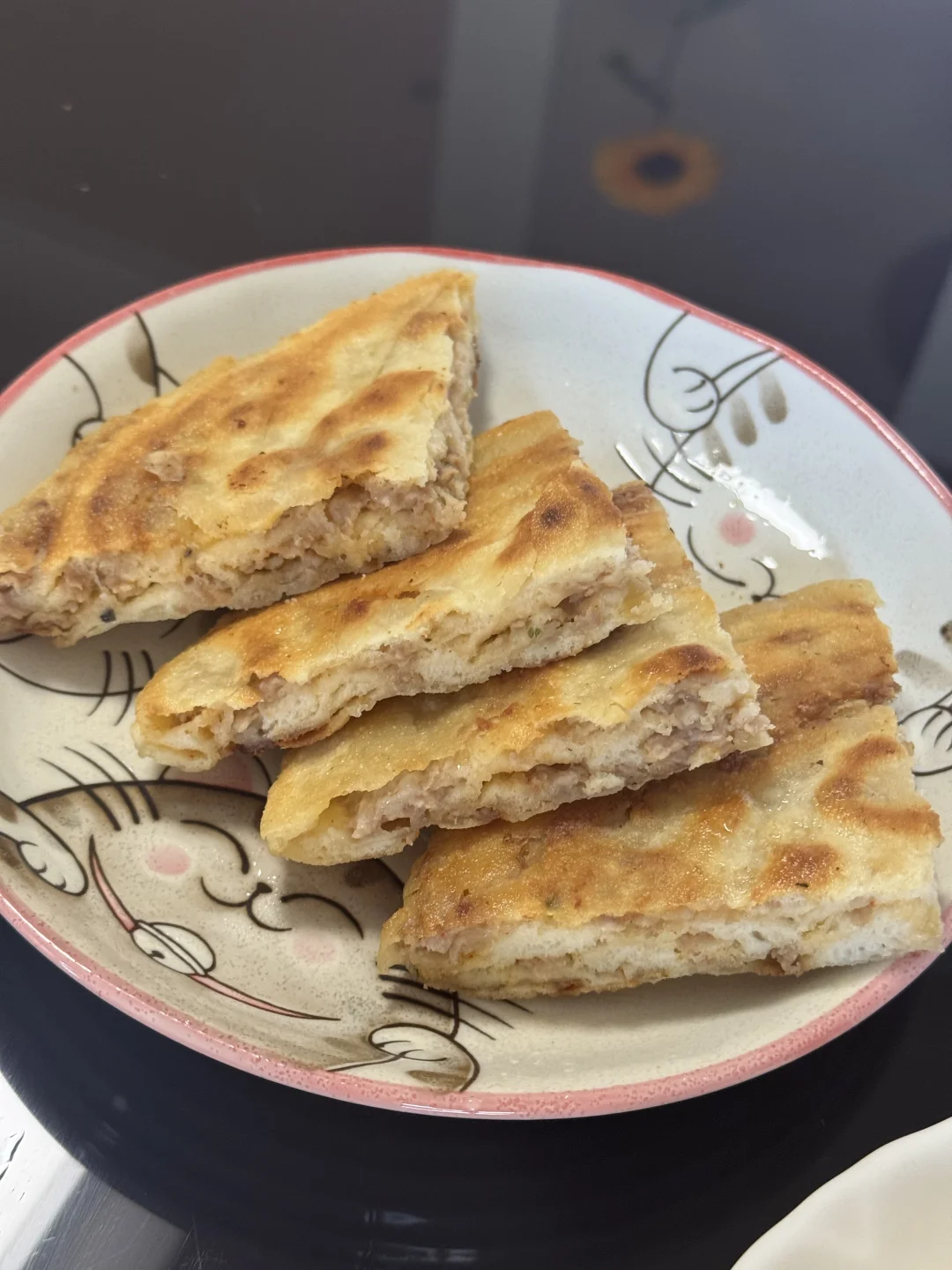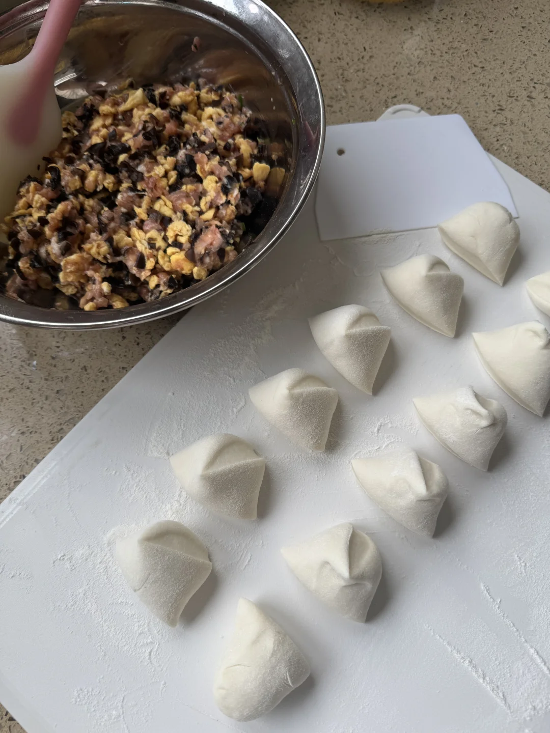 今天做了三鲜水煎饺,酒酿鸡蛋小圆子,剩下的肉馅儿煎了两张麻辣肉饼,备着明天的早餐啦! 话说这个三鲜水煎饺太好吃了,墙裂推荐给要娃儿备餐的宝妈们: 馅儿:三个鸡蛋炒熟打散,肉馅加葱姜花椒水、盐、糖、生抽、十三香拌匀,一袋盒🐴青虾滑,一把木耳提前泡好焯水后切碎。 饺皮:300g面粉+3g酵母+一小勺糖+170g水,发酵。 包成大饺子后,室温醒发20分钟,然后热锅凉油放入饺子,底部焦黄后导入一碗淀粉水,盖盖中小火煎到水分基本收干,开盖沿着锅边再淋入少许油,煎到焦黄香脆就可以出锅啦!