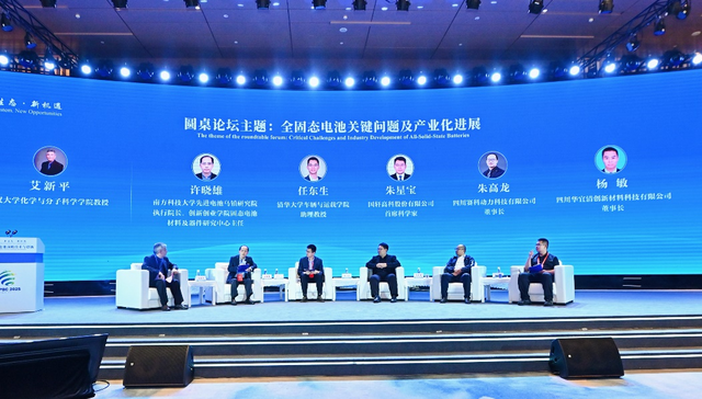 圆桌聚焦“全固态电池关键问题及最新进展”,分享科研与产业化实践。由武汉大学化学与分子科学学院教授艾新平主持,南方科技大学先进电池乌镇研究院执行院长、创新创业学院固态电池材料及器件研究中心主任许晓雄、清华大学车辆与运载学院助理教授任东生、国轩高科股份有限公司首席科学家朱星宝、四川赛科动力科技有限公司董事长朱高龙、四川华宜清创新材料科技有限公司董事长杨敏等嘉宾参与对话。