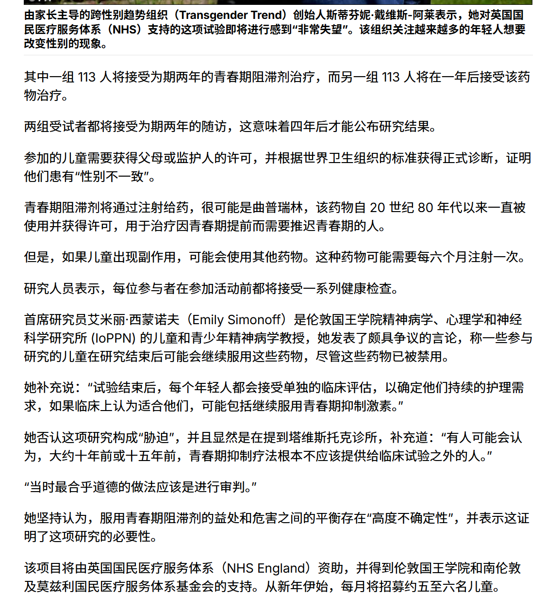 🔻我的妈耶,英国彻底疯了,要给数百名10岁左右的“自认为跨性别儿童”打变性药。