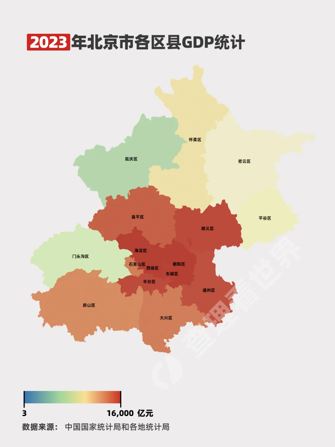 2023年北京各区县GDP统计地图