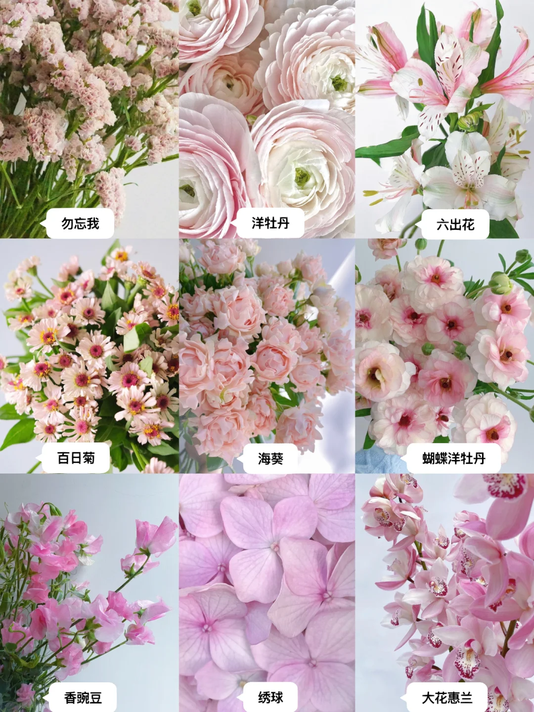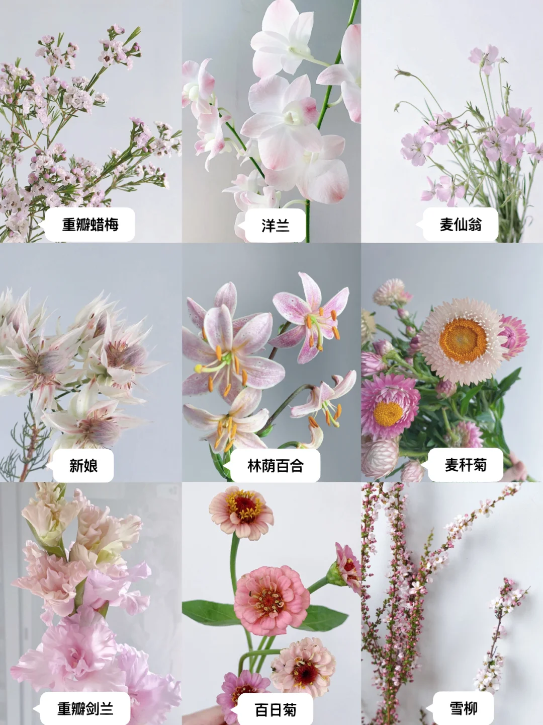 🌸🌸花材认识|粉粉嫩嫩的54种粉色鲜花合集