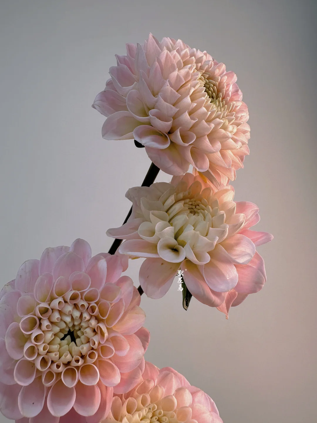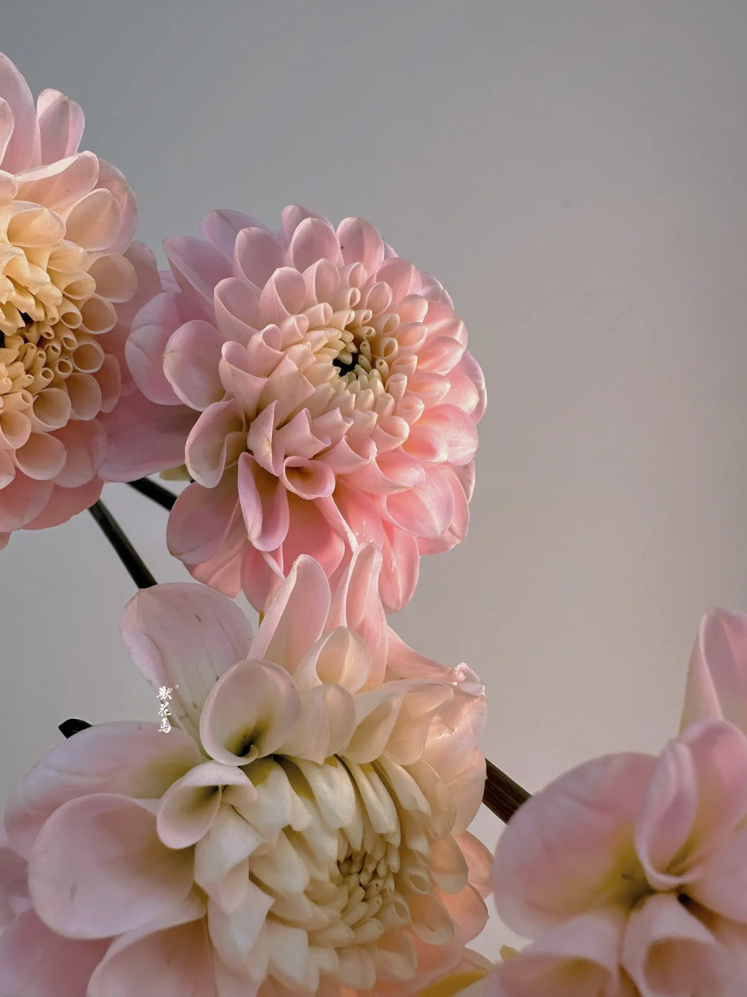 这个品种的大丽花比较多变,春花和秋花的颜色差别较大,现在是秋花,颜色较为浅淡,偏白和粉色。春花的颜色会更红一些。我刚刚收到就拍了,如果养几天花会更圆润。