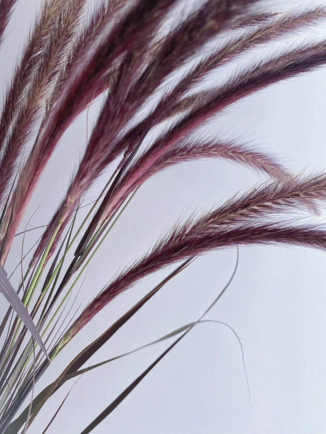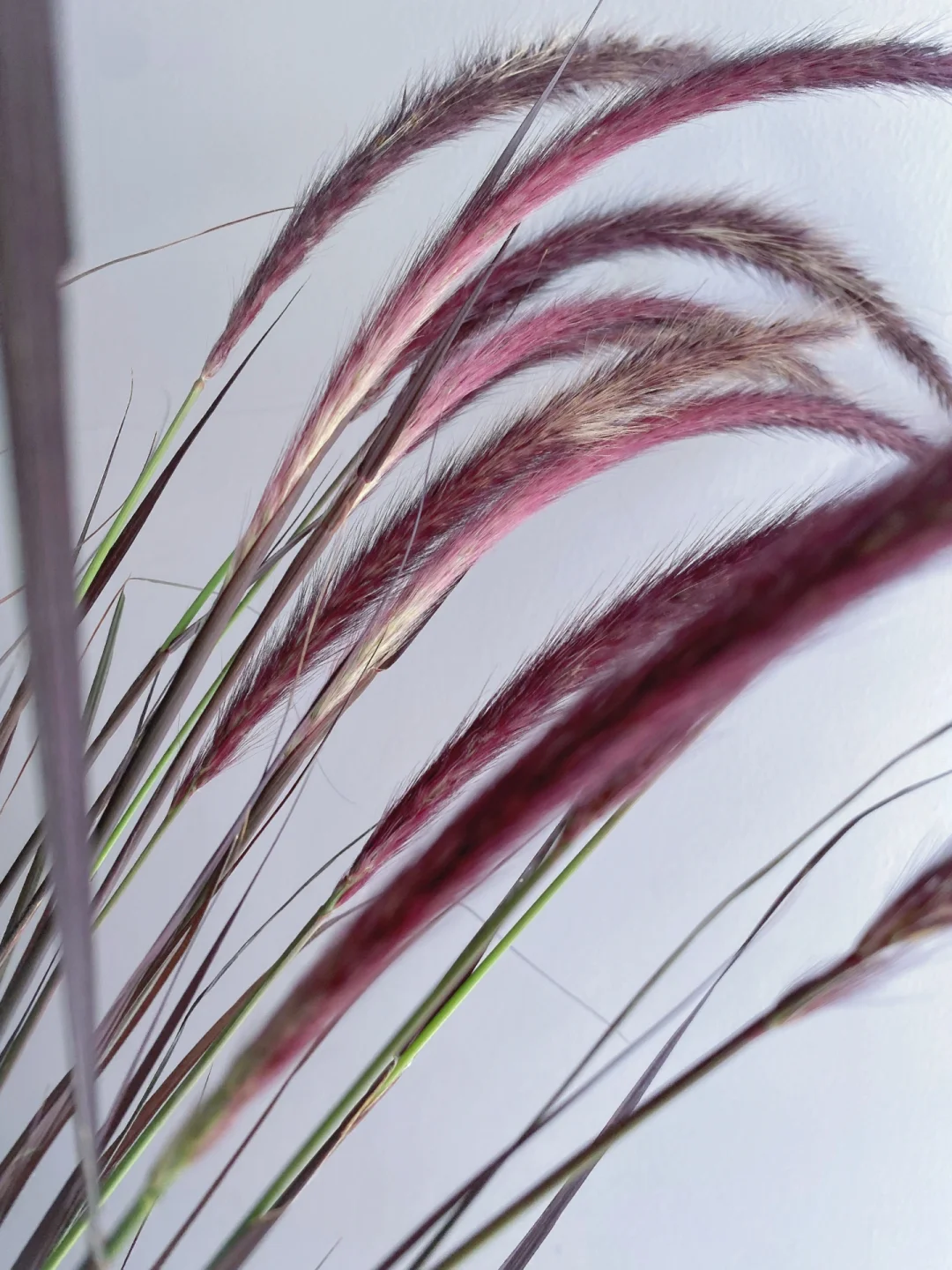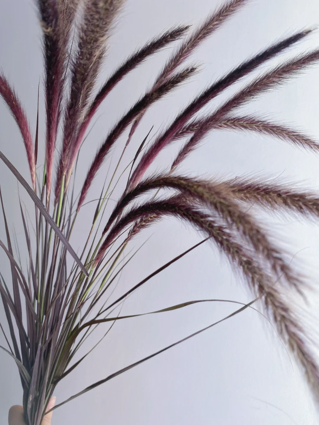 紫叶狼尾草在鲜切花中还是比较小众的新秀,但是在园林绿化中,已经是常见的观赏草了,形态优美,叶片狭长,非常适合秋季氛围,营造一种野趣美。在花艺设计当中也是非常仙气的花材。
