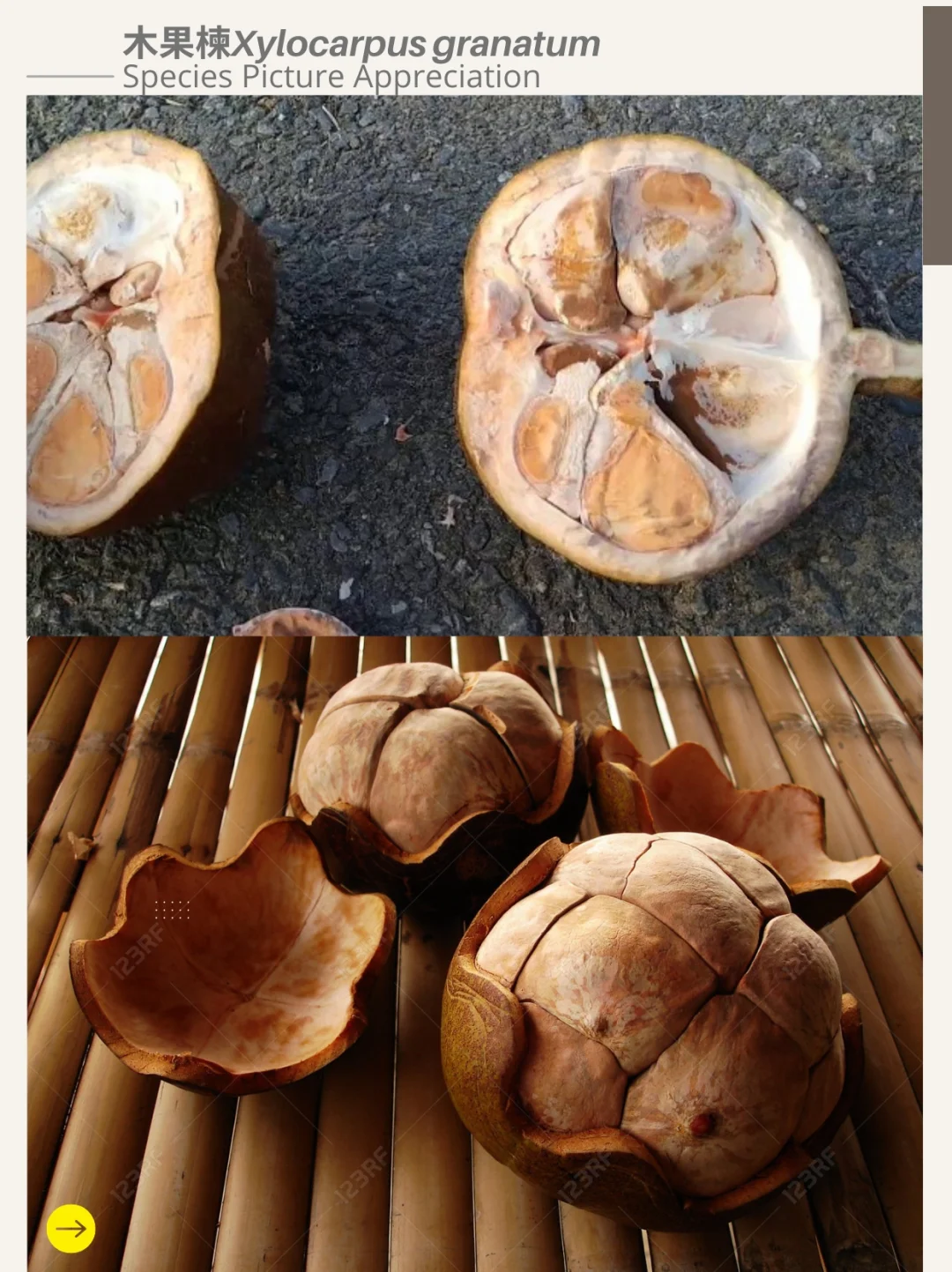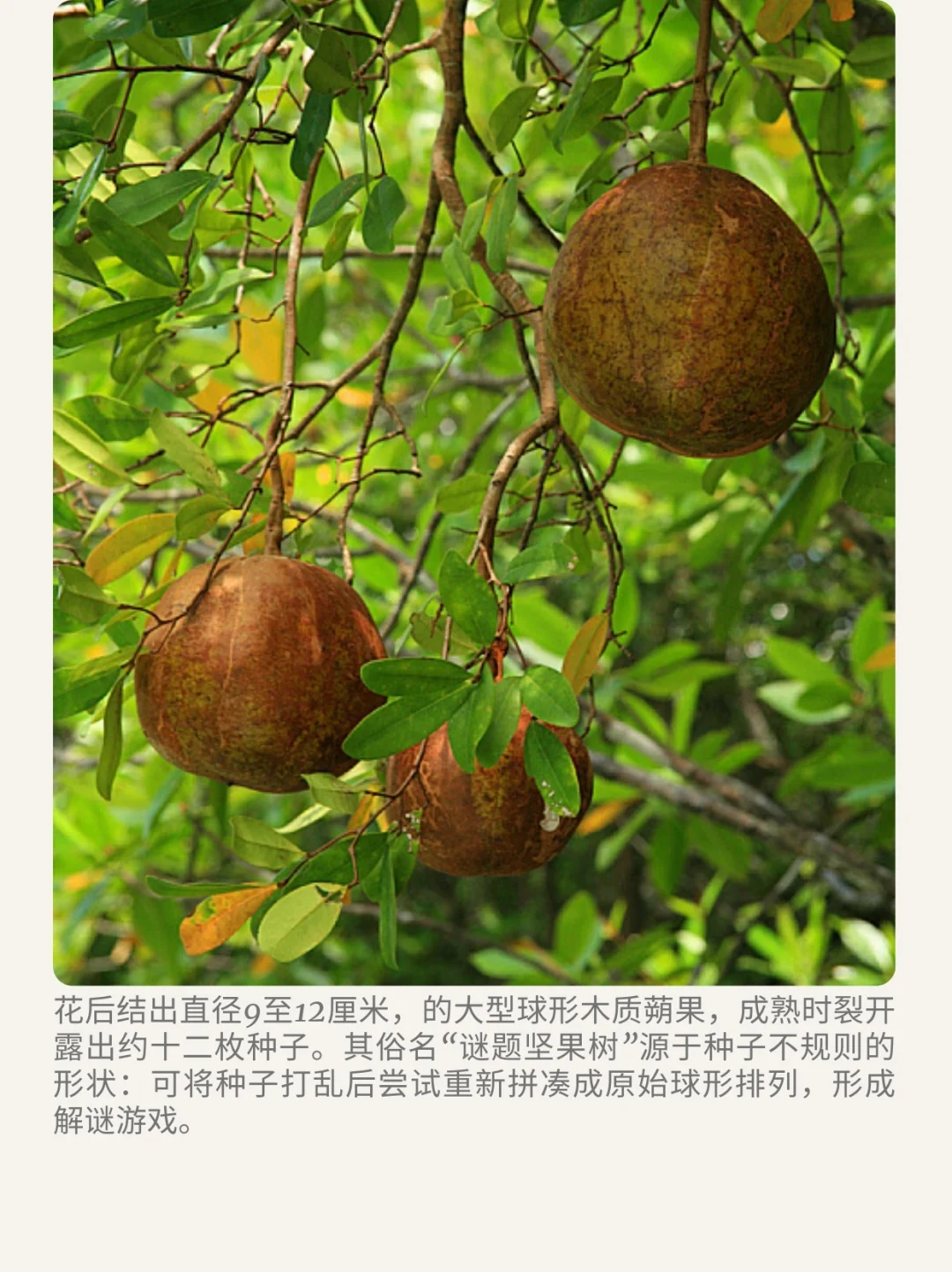 乔木 常绿乔木 楝科 木果楝属 木果楝 花园植物 炮弹红树 谜题 解谜游戏 谜果树 木果楝Xylocarpus granatum),俗称炮弹红树、雪松红树或谜果树,是楝科Meliaceae木果楝属Xylocarpus